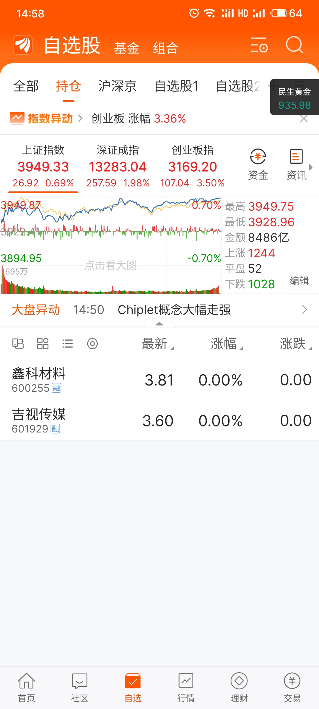 $吉视传媒(SH601929)$ $鑫科材料(SH600255)$ 你俩这一天可以的