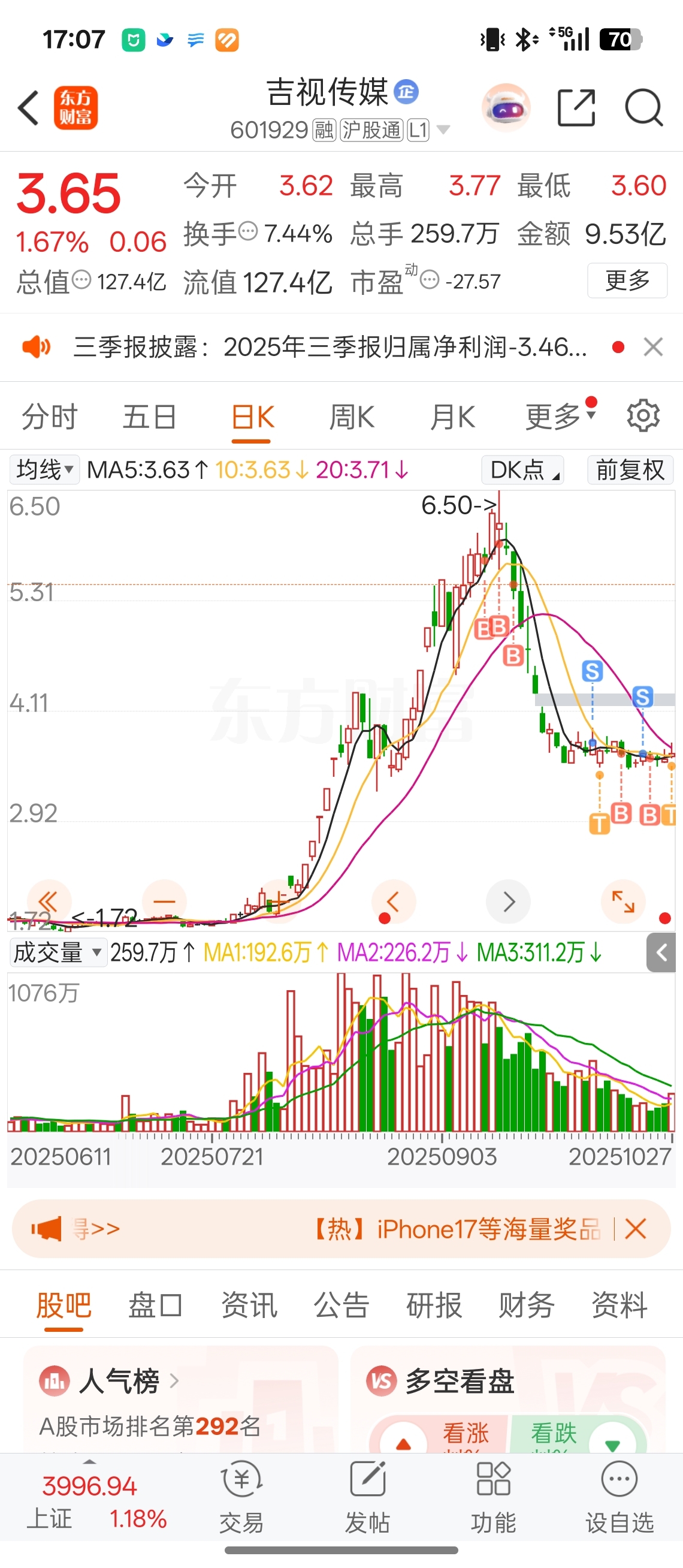 $吉视传媒(SH601929)$ 哎 都是眼泪