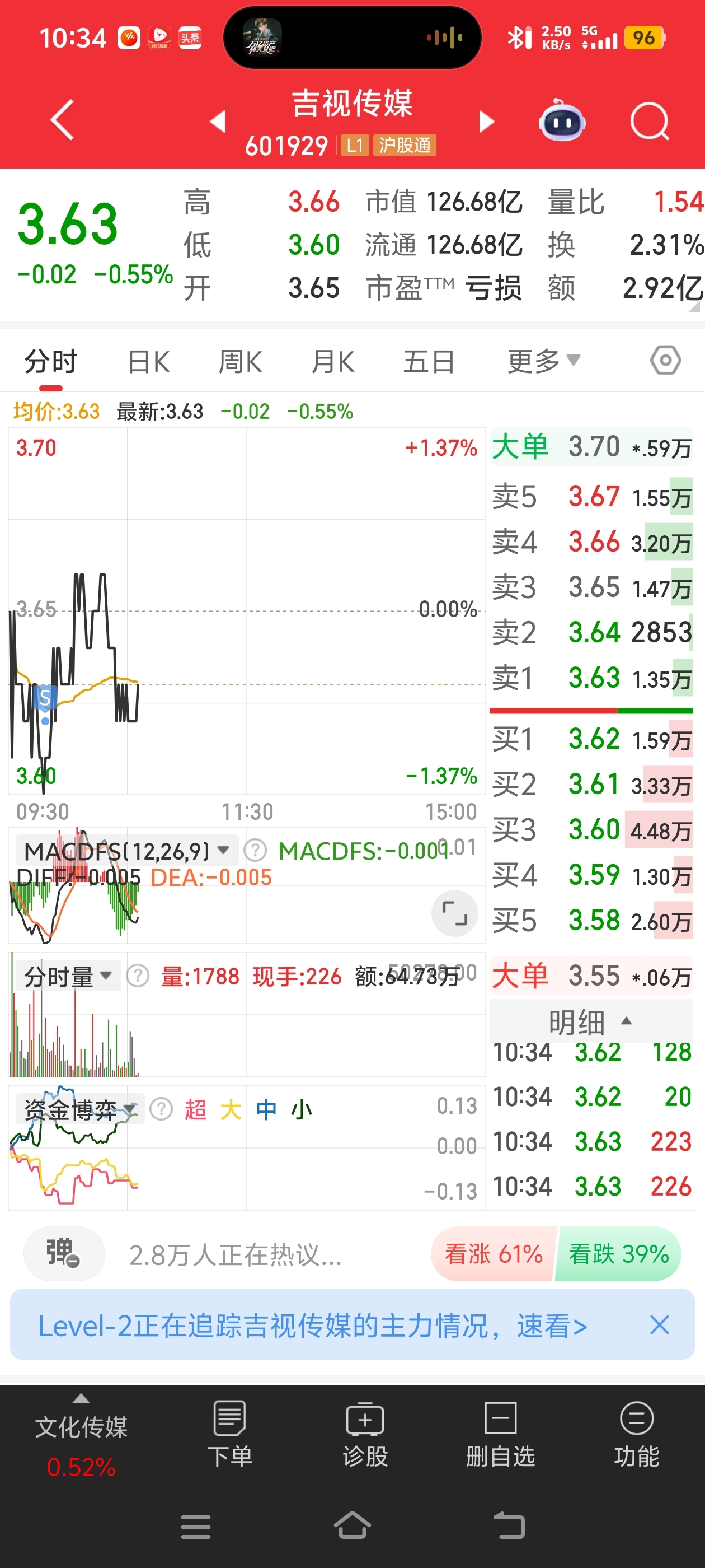 $吉视传媒(SH601929)$ 今天还想t3分呢,结果t飞了,咋办啊?好慌啊
