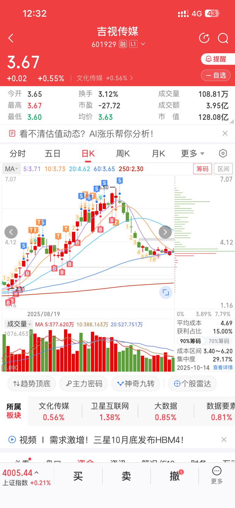 $吉视传媒(SH601929)$ 这个是作的比较成功的一个票,感谢各位老板