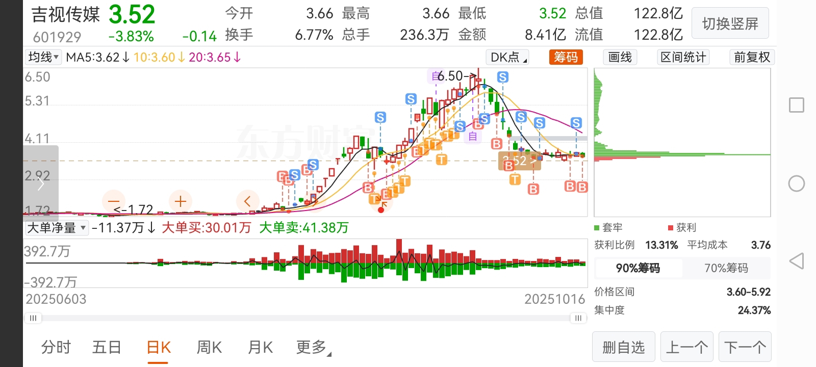 $吉视传媒(SH601929)$ 重仓猛干,浮盈加仓,频繁交易,技术分析,冰点割肉,主升空仓, 分歧接面, 退潮追涨。
