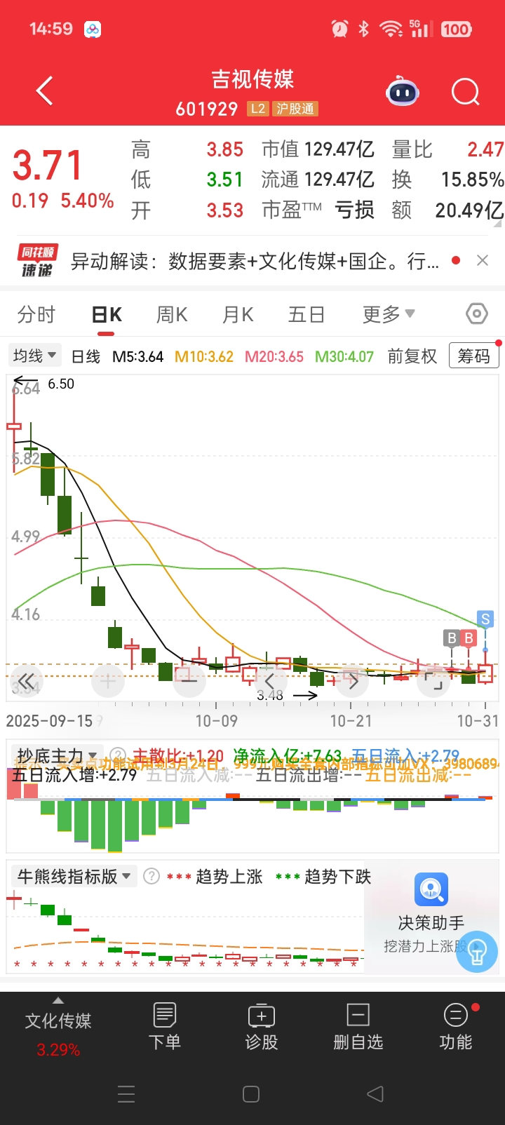 $吉视传媒(SH601929)$ 今天追进来的,周一准备吃面吧。