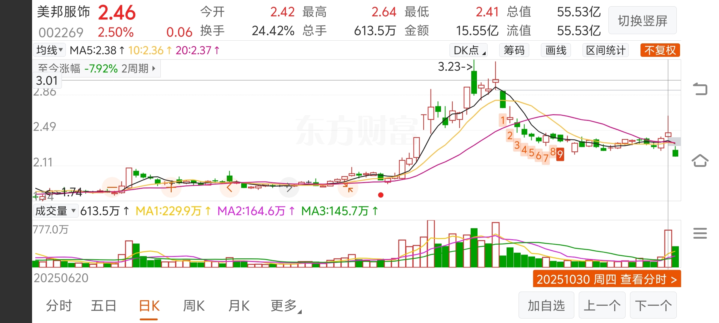 放倍量不涨停,冲高回落第二天乃至于后面的走势都是一塌糊涂,今天还做了一个反T,哎