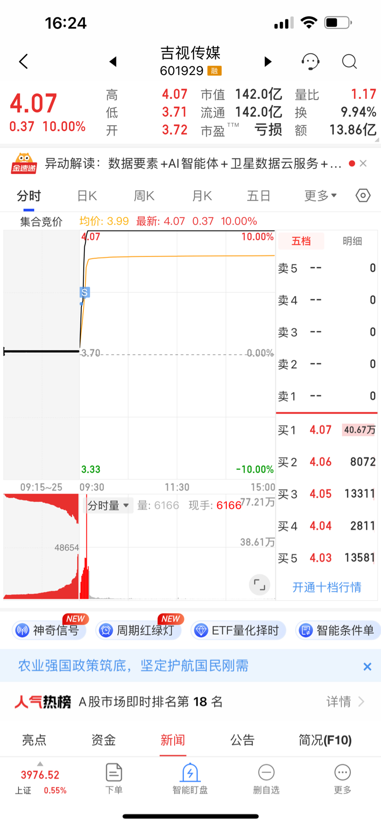 $吉视传媒(SH601929)$ 有多少人跟我一样卖飞了