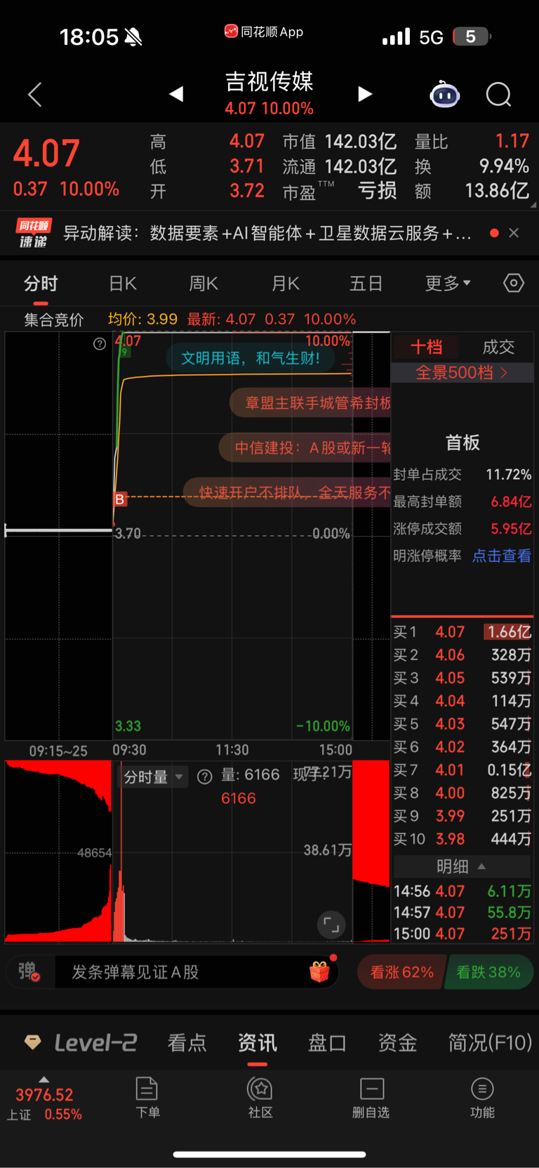 $吉视传媒(SH601929)$ 没有漏单,明天走连板$四维图新(SZ002405)$ $汉马科技(SH600375)$