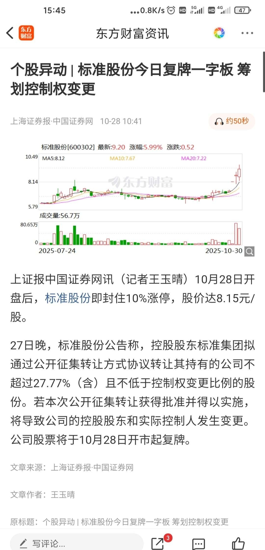 超级.重.磅标准股份,已经公告:马上就要重组!最明确的重组股,盘小质优,起码翻五