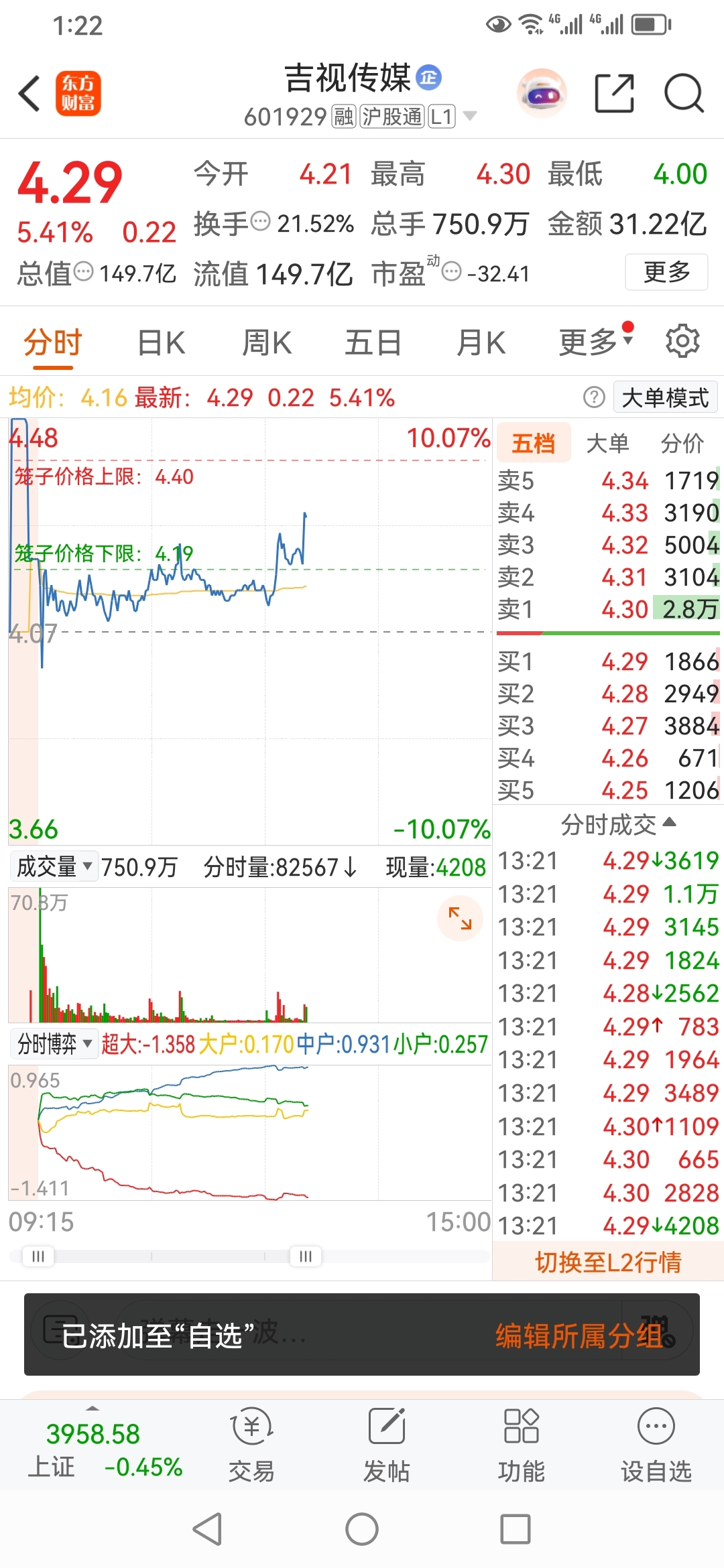 今天继续买进,吉视传媒4.10