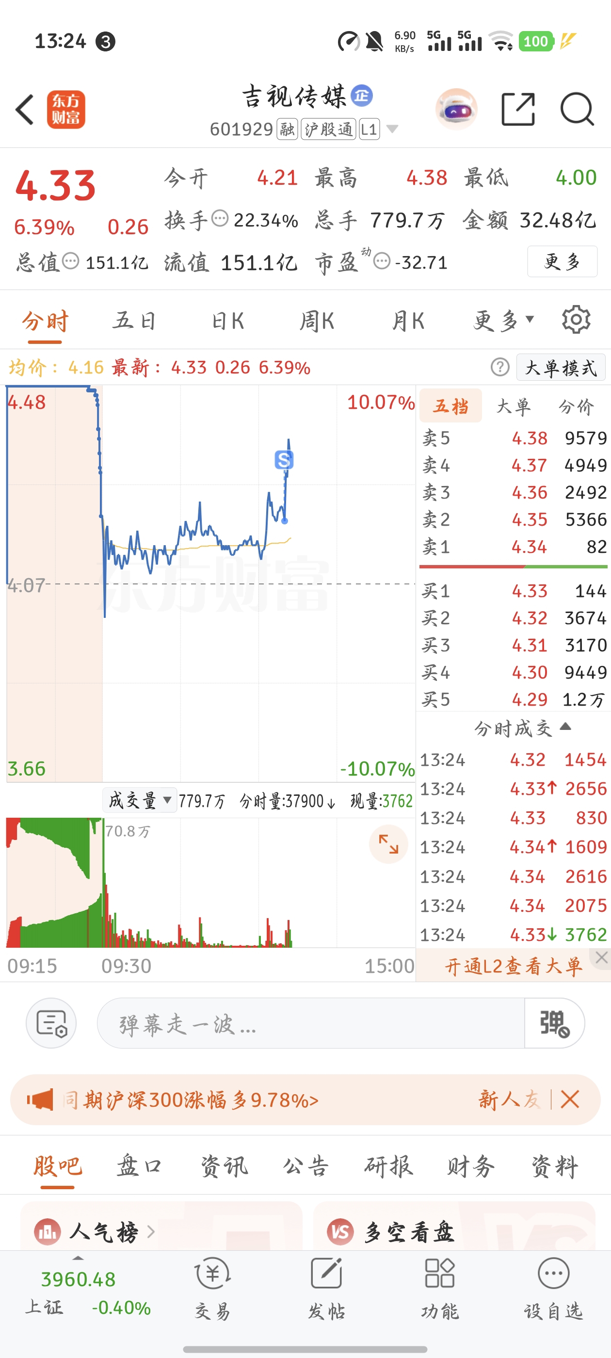 $吉视传媒(SH601929)$ 我不卖他不涨啊