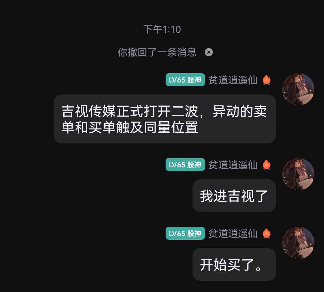 $吉视传媒(SH601929)$ 这是我今年第2次进这个了,上一次进这个翻了三倍这一次我也不求多30%就行