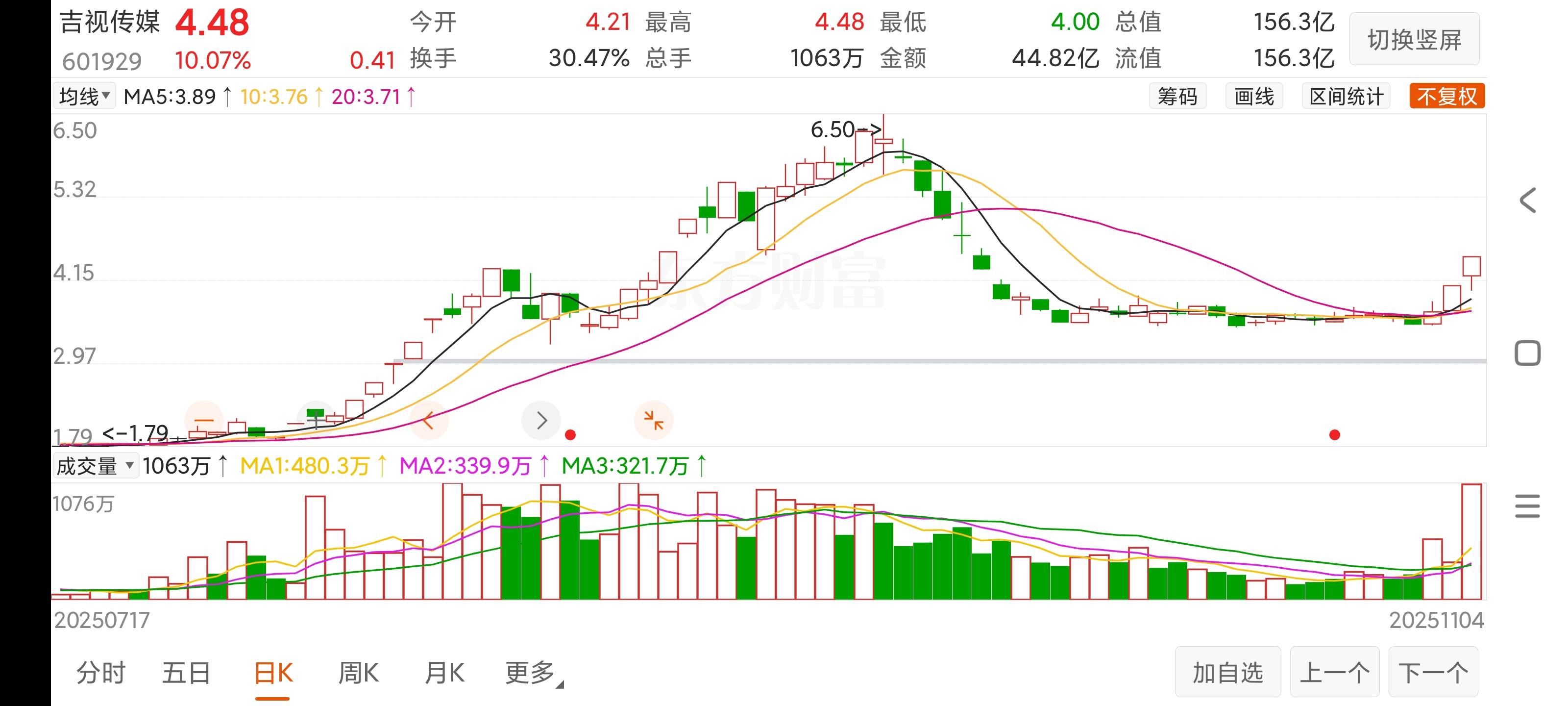 $吉视传媒(SH601929)$ 这是一浪新的上涨行情,不是一两天的反弹。会走出3-6个涨停板接近前高或过前高。能不能拿得住看个人了,就像平潭发展我只赚了50个点,6.3卖了,卖的太惨了,看到后面的走势但拿不住。