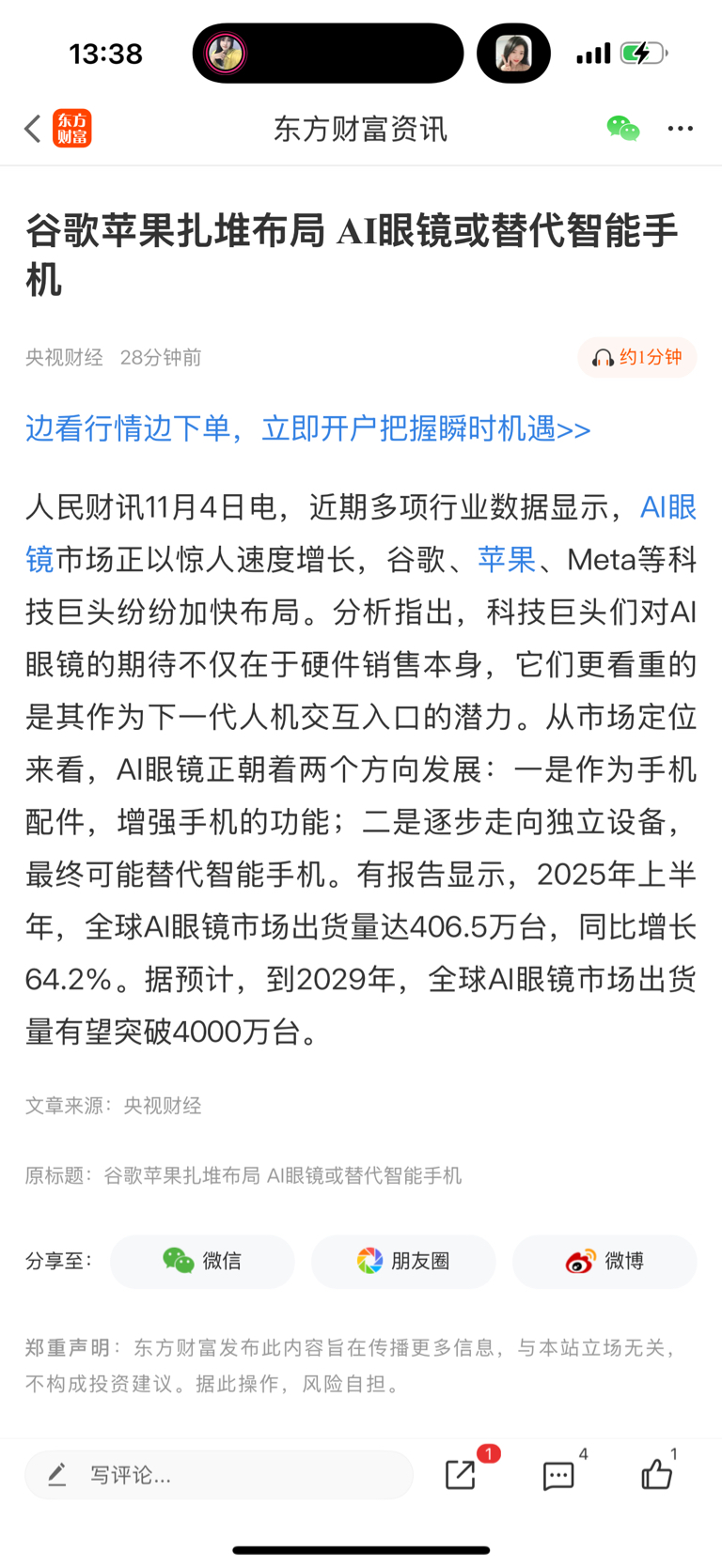 $吉视传媒(SH601929)$ 爆发……Ai眼镜火了…央视财经今天特别报道…双11Rokid增长超7倍,雷鸟增长超80%…夸克AI眼镜登顶XR设备双11热卖榜TOP1……明天…重点关注~明月镜片,博士眼镜!