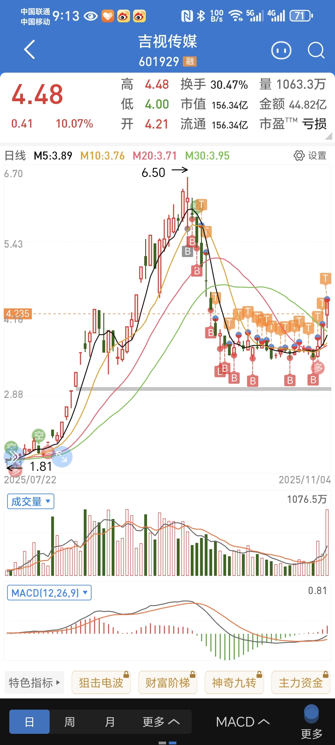 $吉视传媒(SH601929)$ 昨天涨停板解套了,当初接的高位筹码,继续吃肉肉
