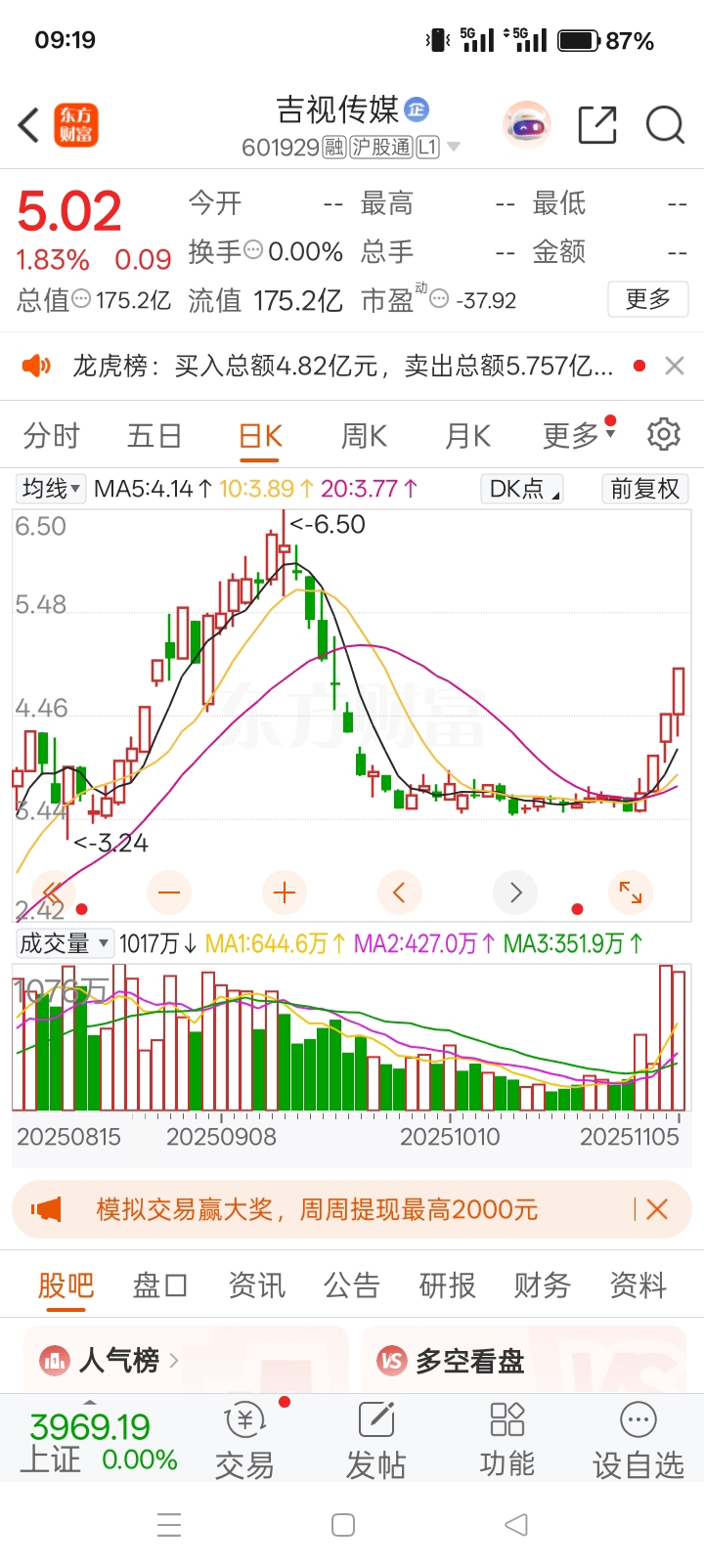 $吉视传媒(SH601929)$ 传媒板块,吉吉国王继续看好,昨天老大中影涨停,其他影视股也陆续上涨,作为龙头,也必须要支棱起来!继续关注