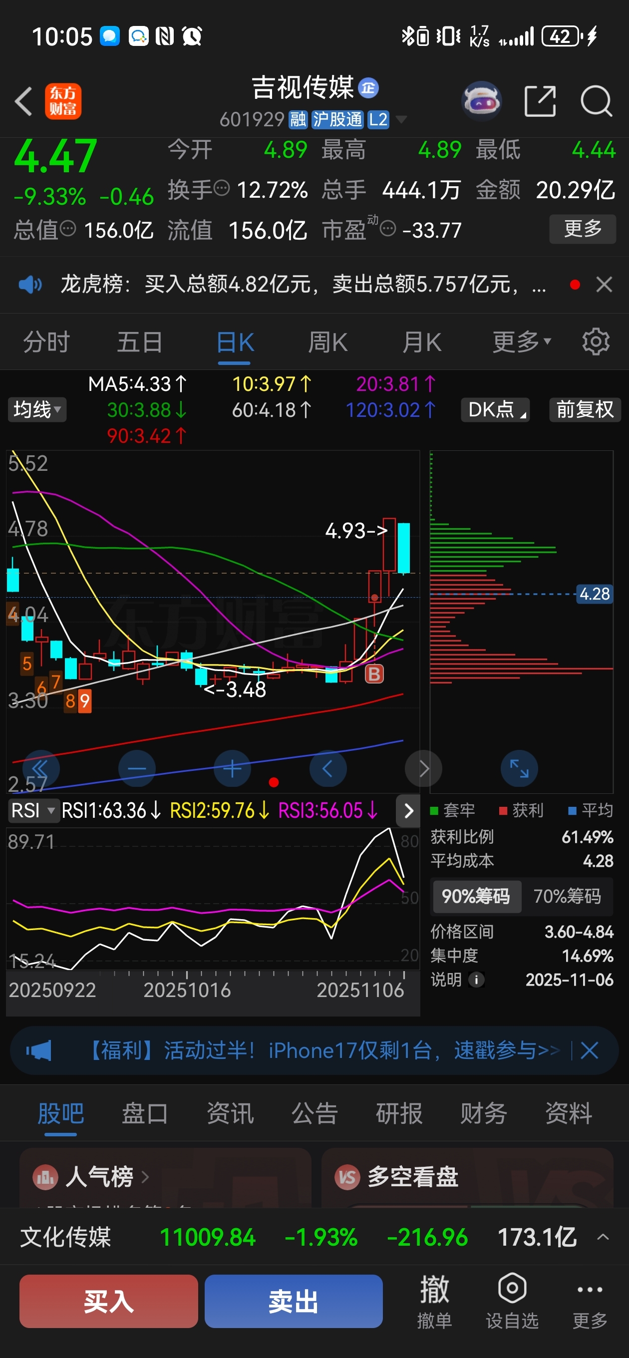 $吉视传媒(SH601929)$ 真不能贪啊,10个点进去了