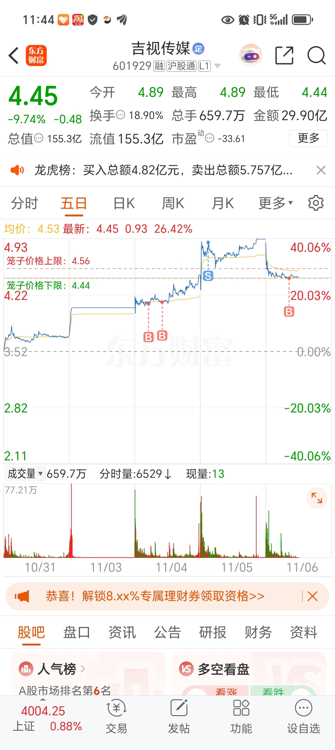 $吉视传媒(SH601929)$ 是洗盘还是出货,感觉出货概率大一些,怎么办!