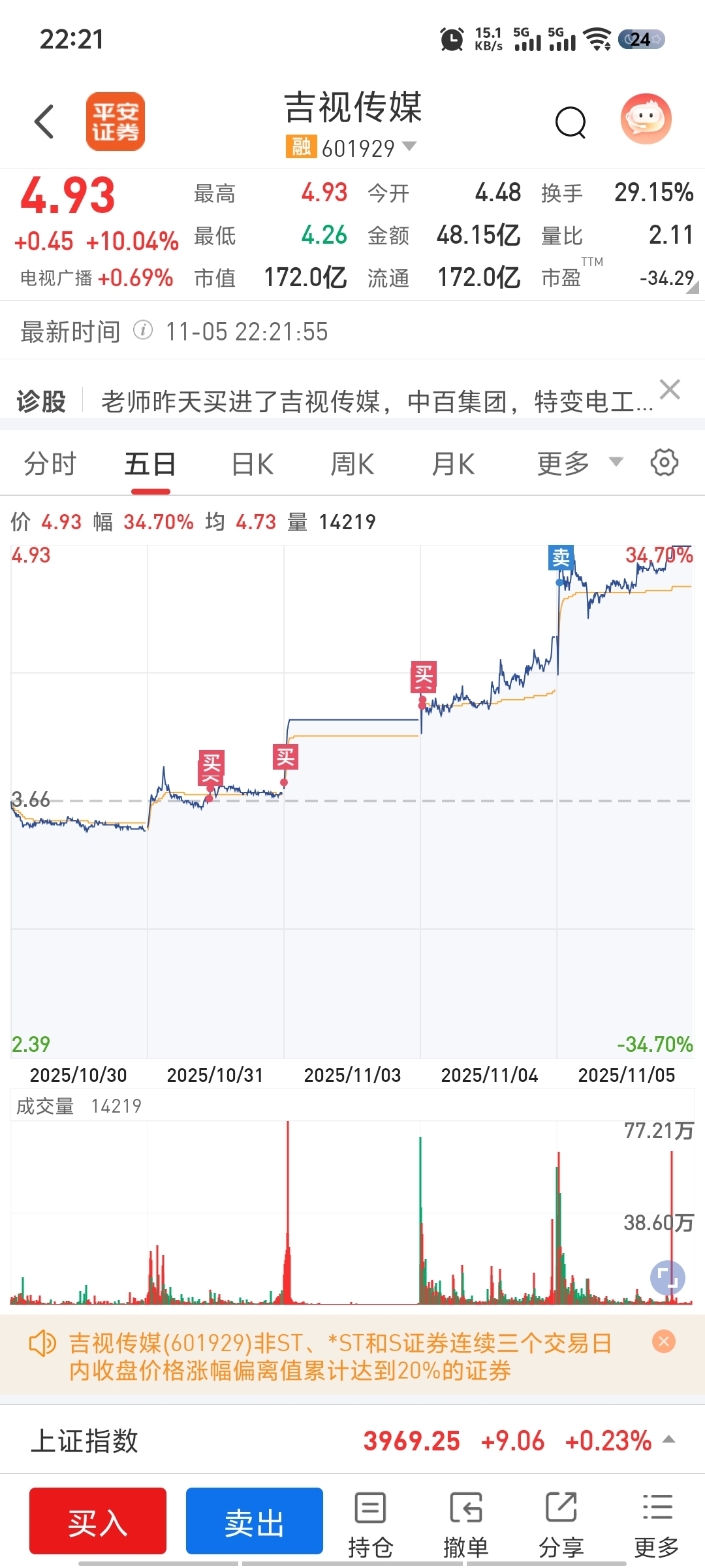 $吉视传媒(SH601929)$ 昨天走了很多人笑话,今天是不是大跌