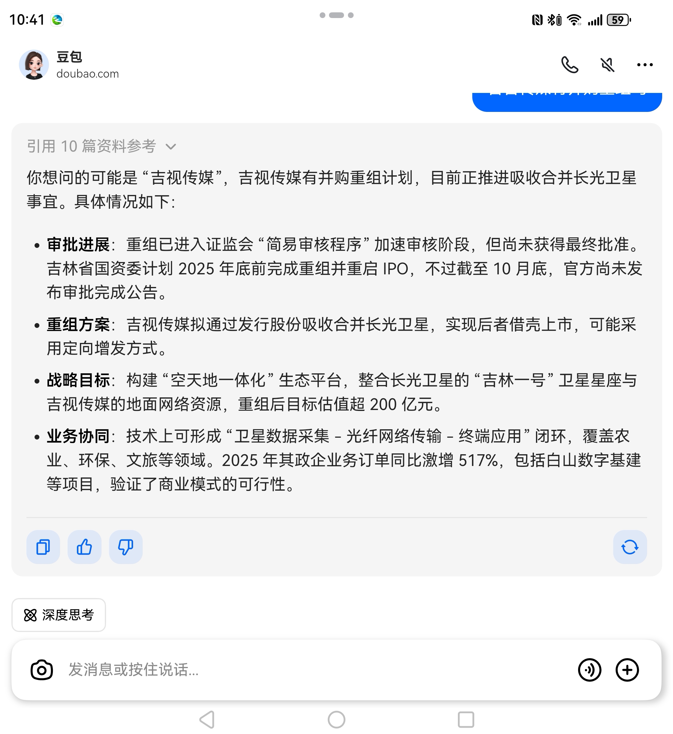 $吉视传媒(SH601929)$ 豆包说了并购重组