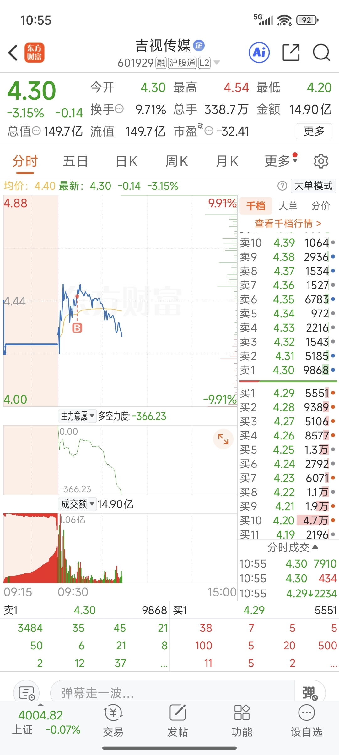 $吉视传媒(SH601929)$ 一手试水,好冷