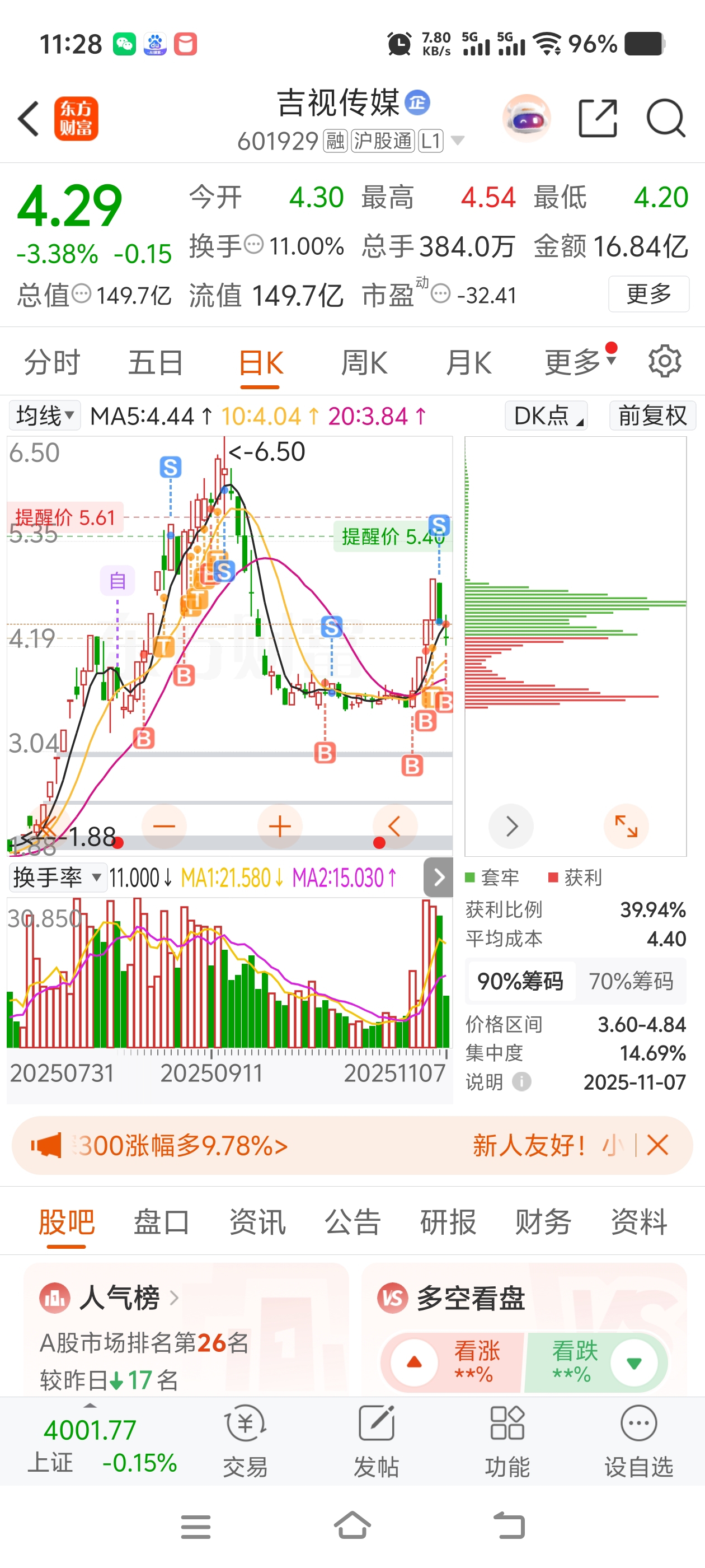 $吉视传媒(SH601929)$ 昨天出去今天回来