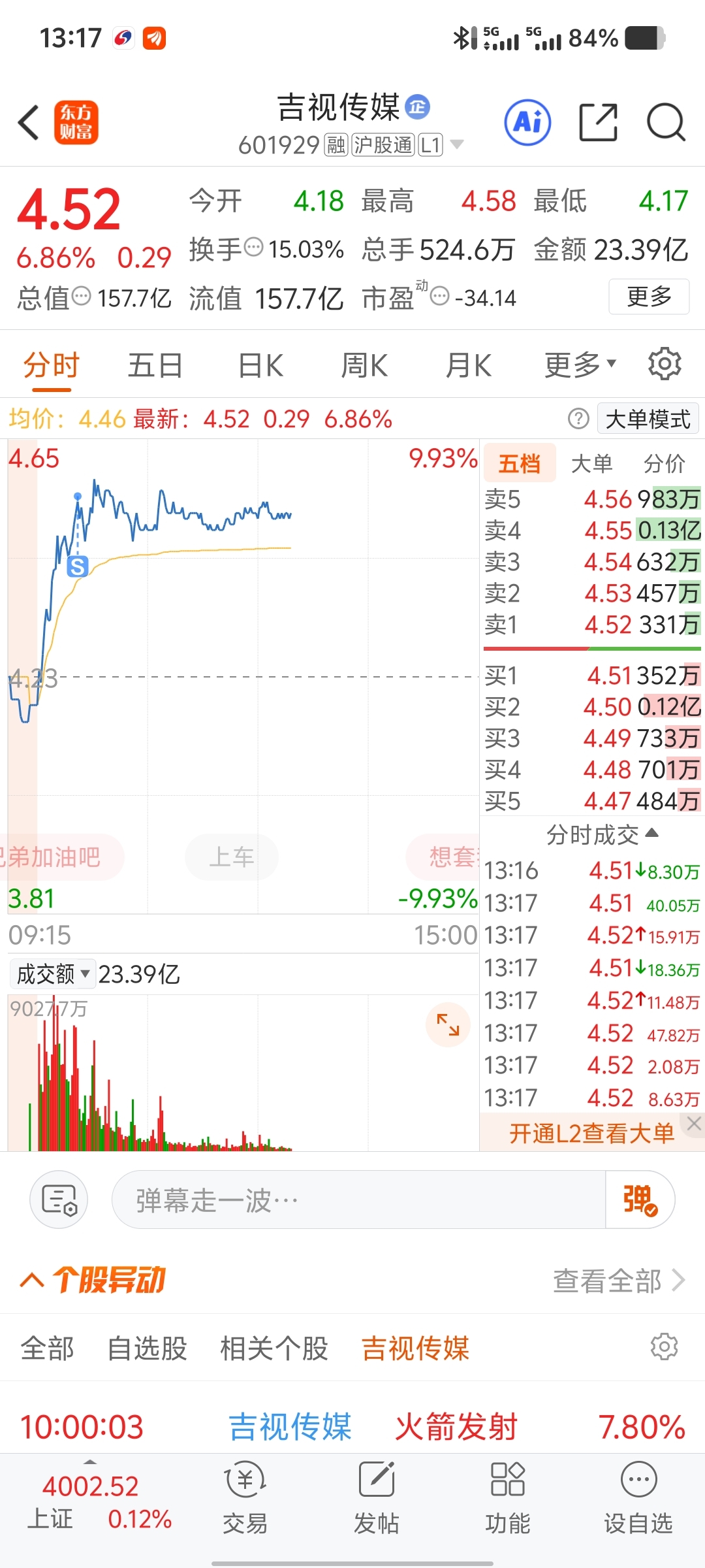$吉视传媒(SH601929)$ 已经卖完了,涨停也不会有遗憾