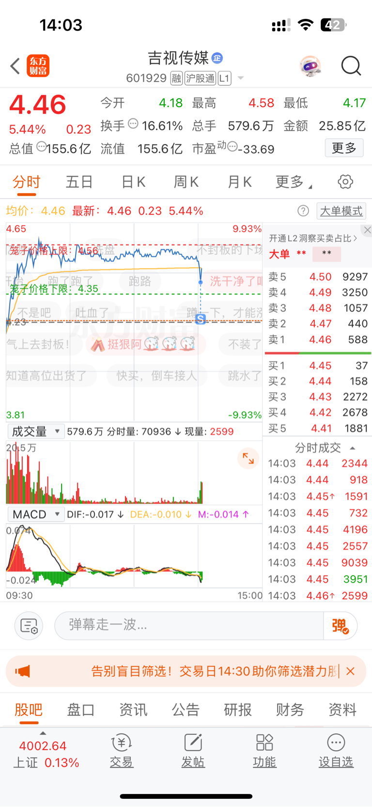 $吉视传媒(SH601929)$ 就等我这一点呢是吧