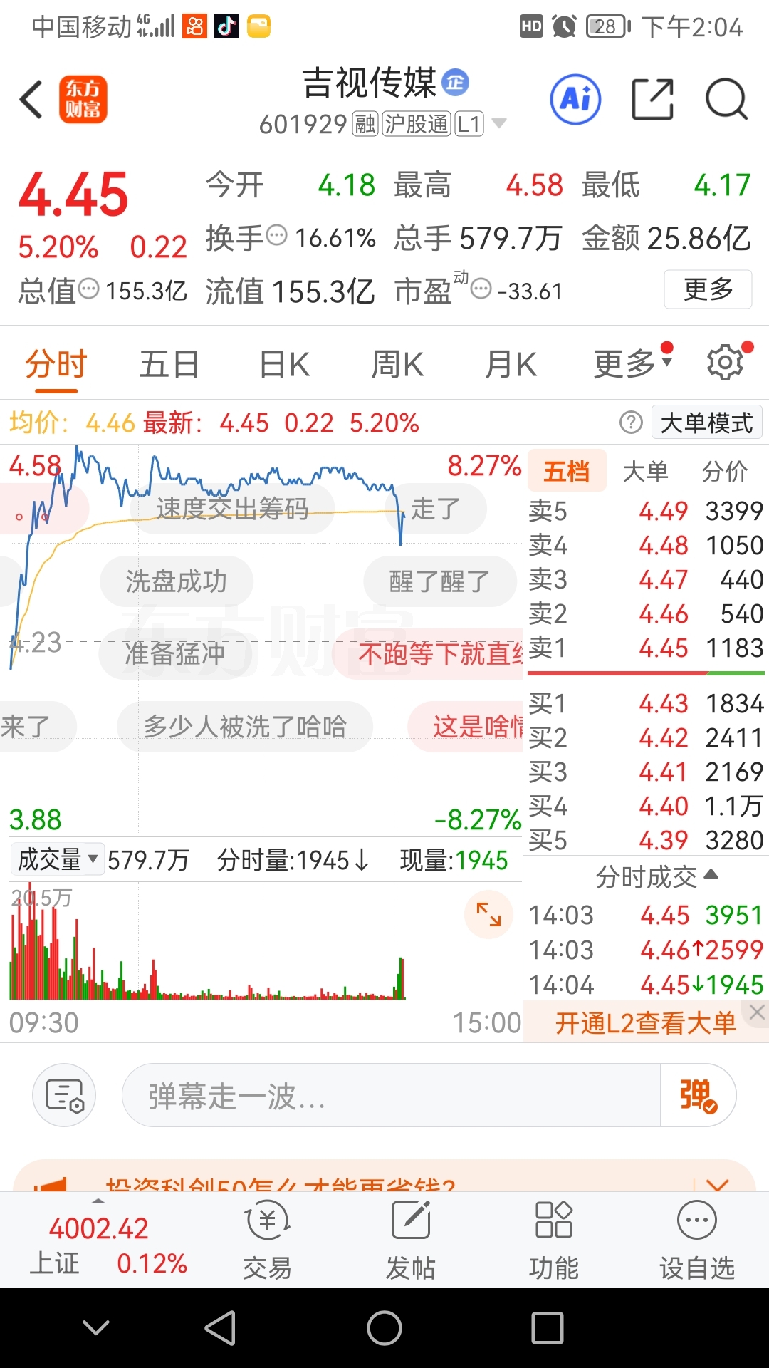 $吉视传媒(SH601929)$ 不封板的下场就是被人砸