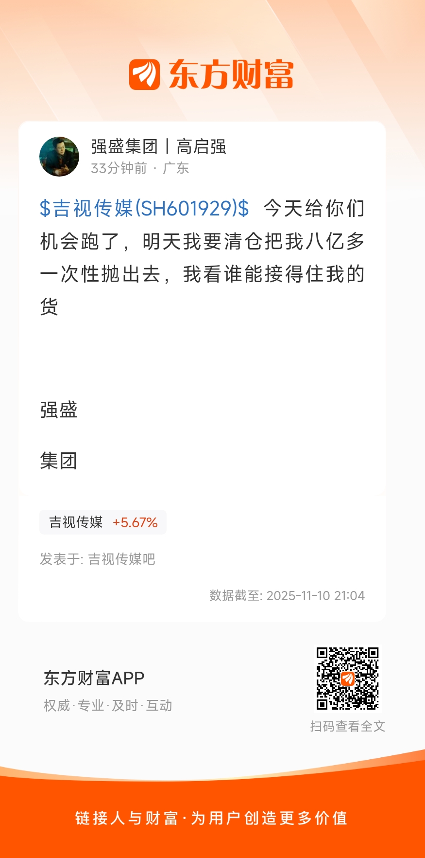 温馨提示: 1.根据《证券法》规定,禁止编造、传播虚假信息或者误导性信息,扰乱证券市场;2.用户在本社区发表的所有资料、言论等仅代表个人观点,与本网站立场无关,不对您构成任何投资建议。用户应基于自己的独立判断,自行决定证券投资并承担相应风险。《东方财富社区管理规定》