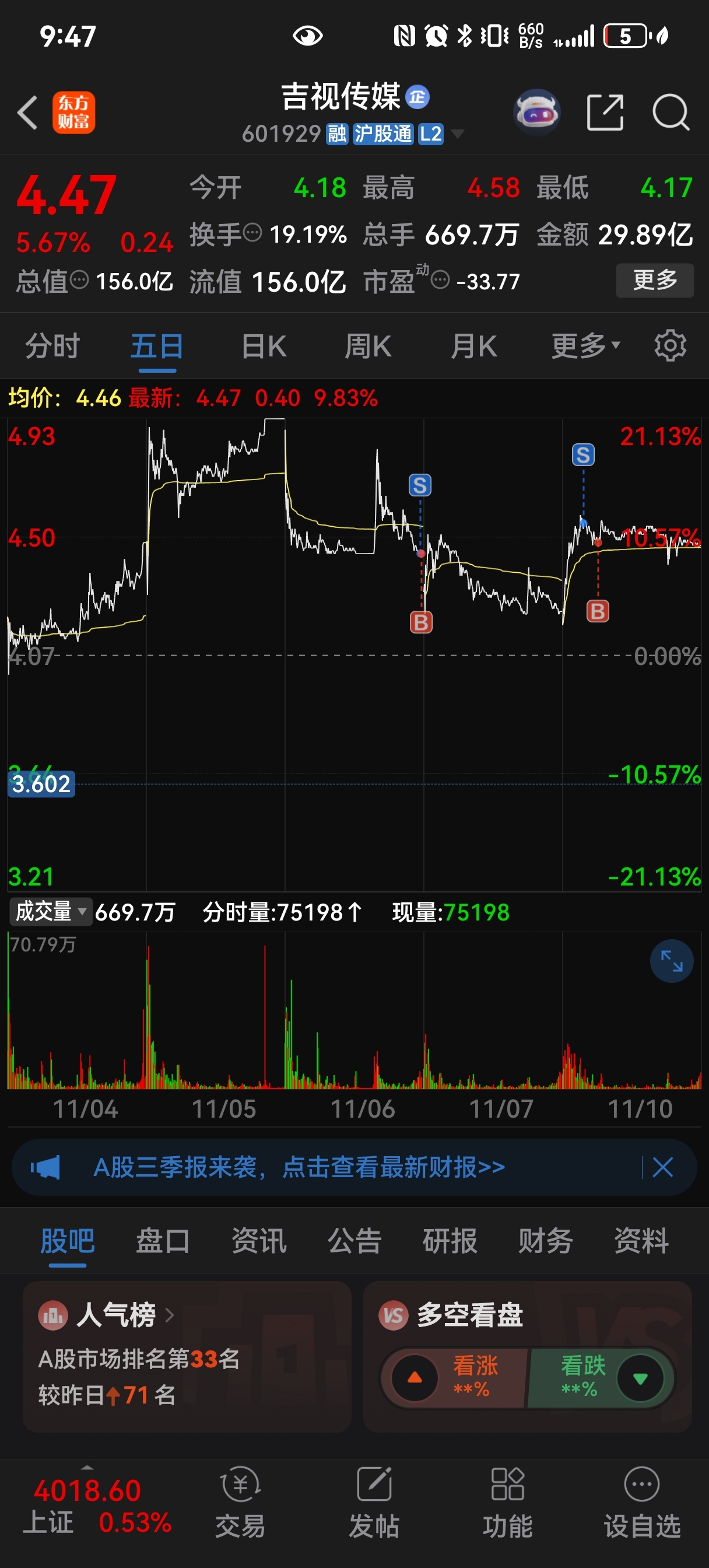 $吉视传媒(SH601929)$ 哎t了个寂寞明天清仓
