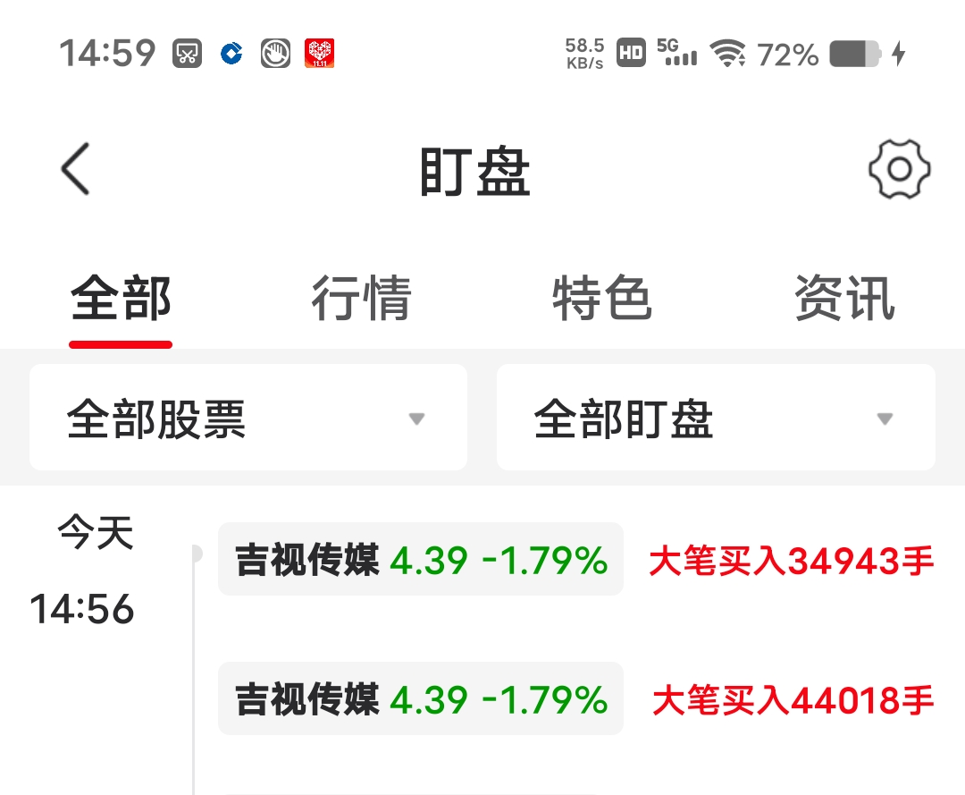 下午临近收盘,14.56分′,主力异动,一笔大单把股价从4.35元,直接拉到4.39元。随后,在4.39元又一笔大单。把股价稳定在4.39元。