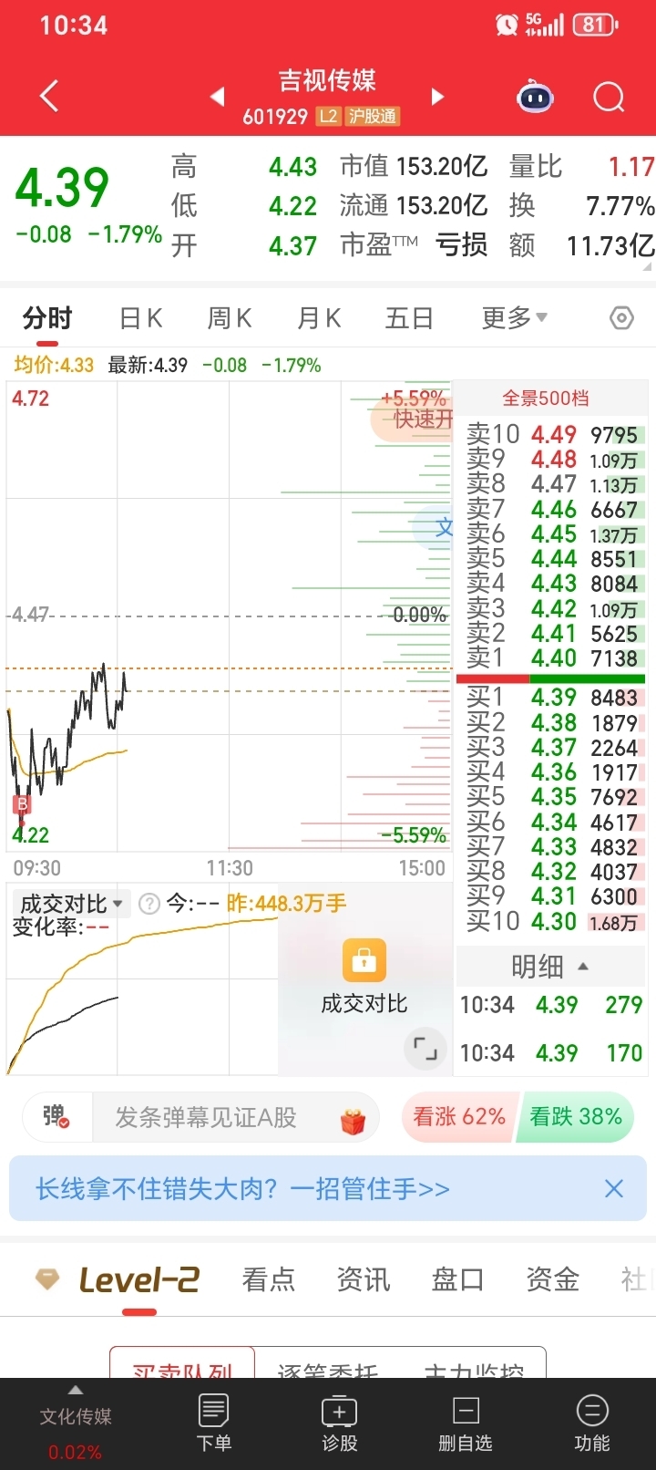 $吉视传媒(SH601929)$ 今天4-5个点,不服来打我脸