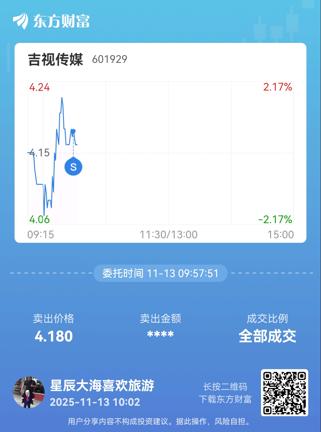 $吉视传媒(SH601929)$ 又在出货了,他拿的,