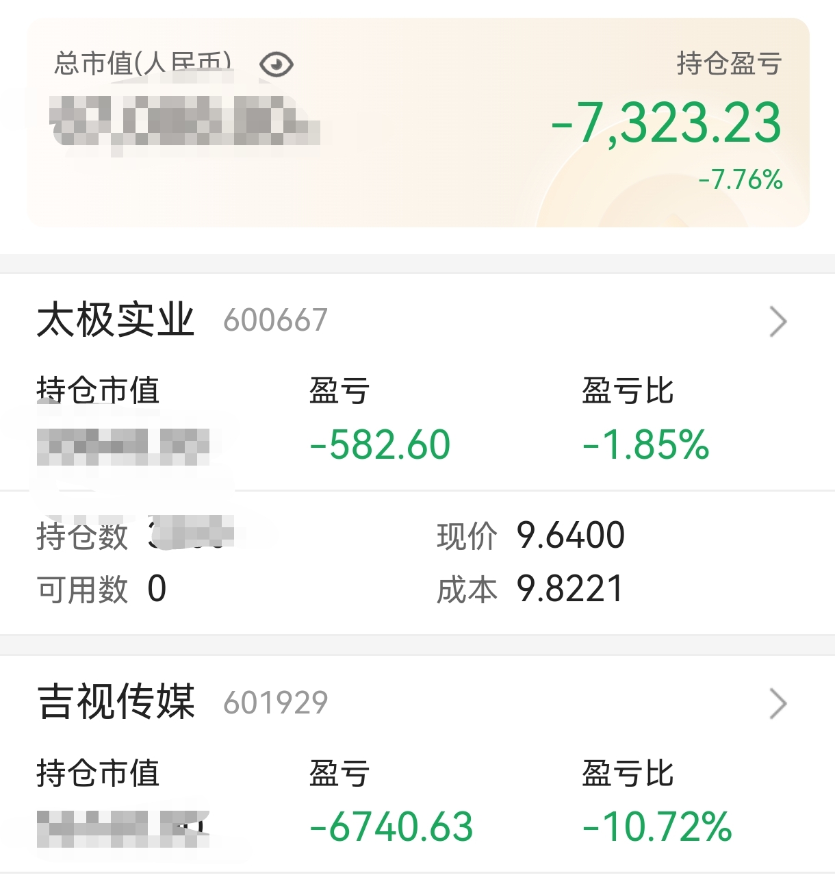 $吉视传媒(SH601929)$ $太极实业(SH600667)$ 好巧啊,这么好的大盘,自选里面两个绿的我全买了。