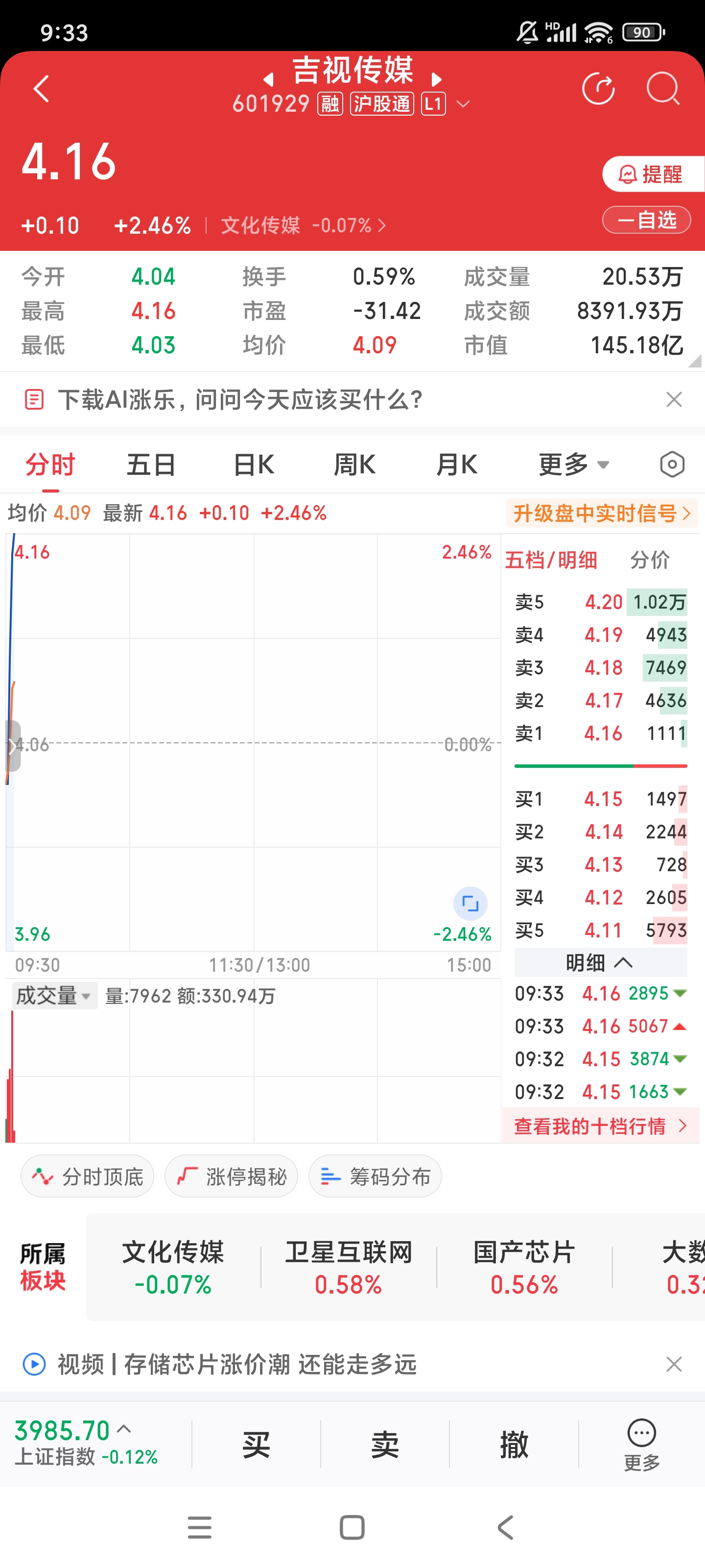 $吉视传媒(SH601929)$ 说了周一,今天成交量趋势是买入点。