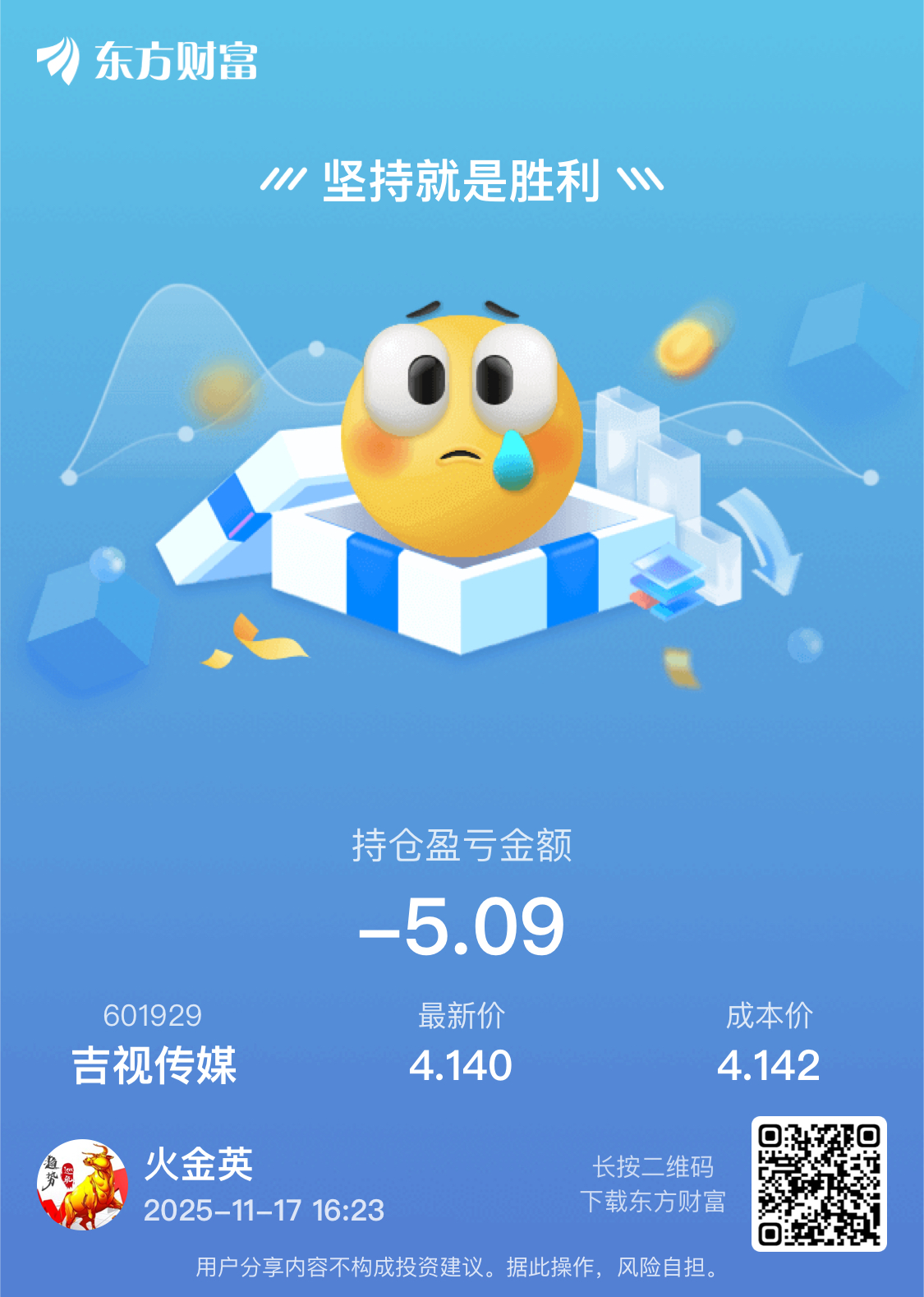 $吉视传媒(SH601929)$ 点着了,亏了一杯饮料