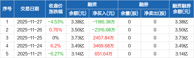 吉视传媒:融资净偿还1186.38万元,融资余额3.38亿元(11-27)