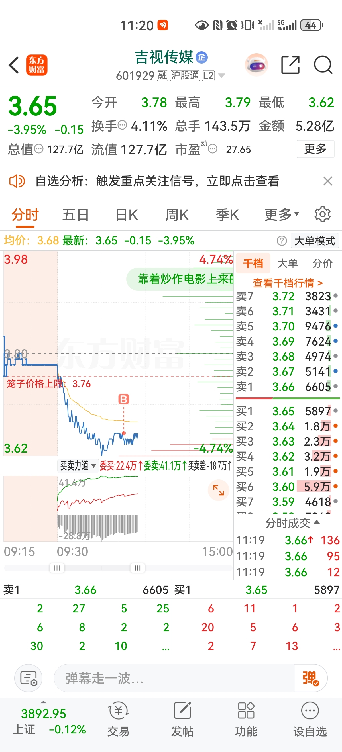 $吉视传媒(SH601929)$ 主力,你看一下,你这么做,像我这样的韭哥越来越多,我买了就不管了,有本事你搞我,不涨不卖