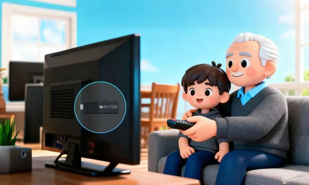 【吉视传媒4K超高清插入式微型机顶盒】一个遥控器+语音操控,老人小孩都会用。能拿