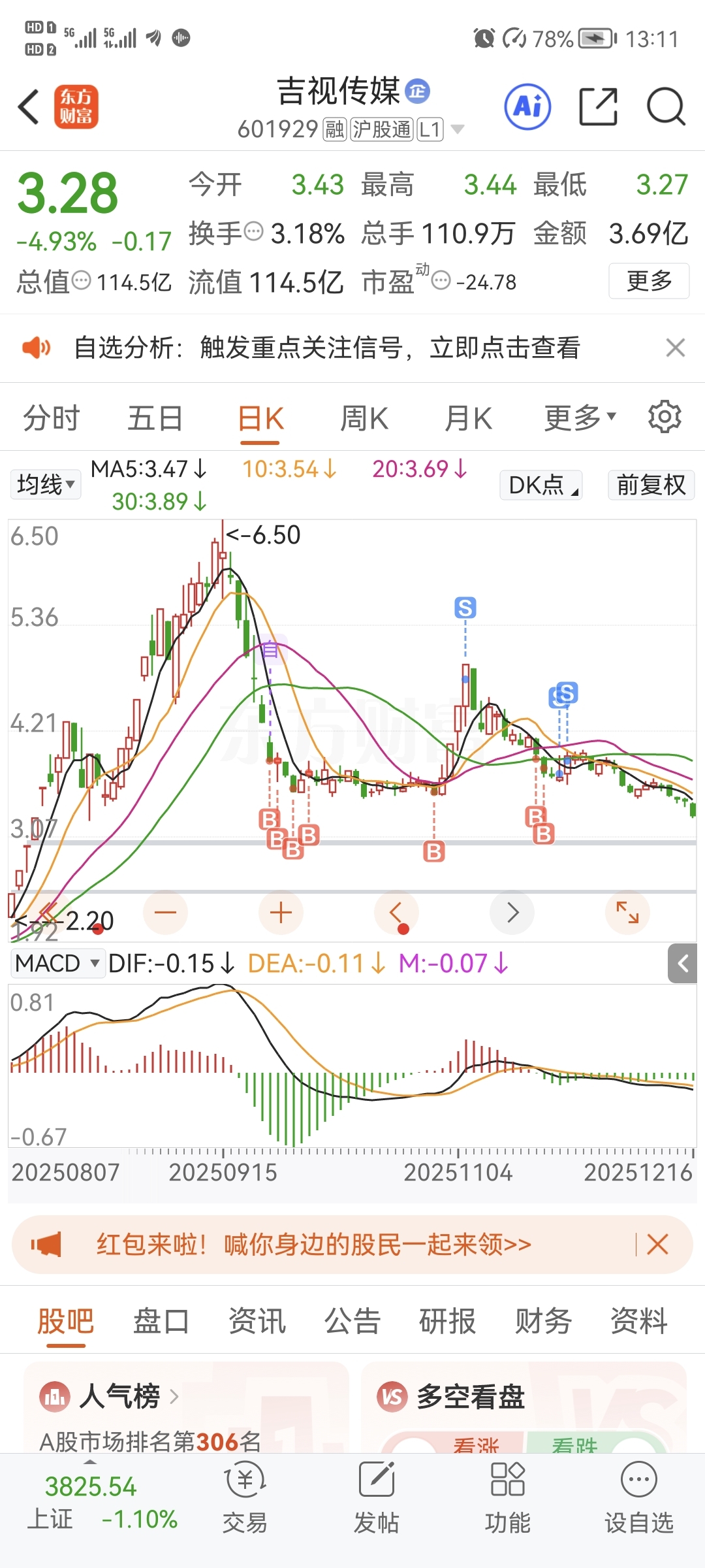 $吉视传媒(SH601929)$ 目标3.07