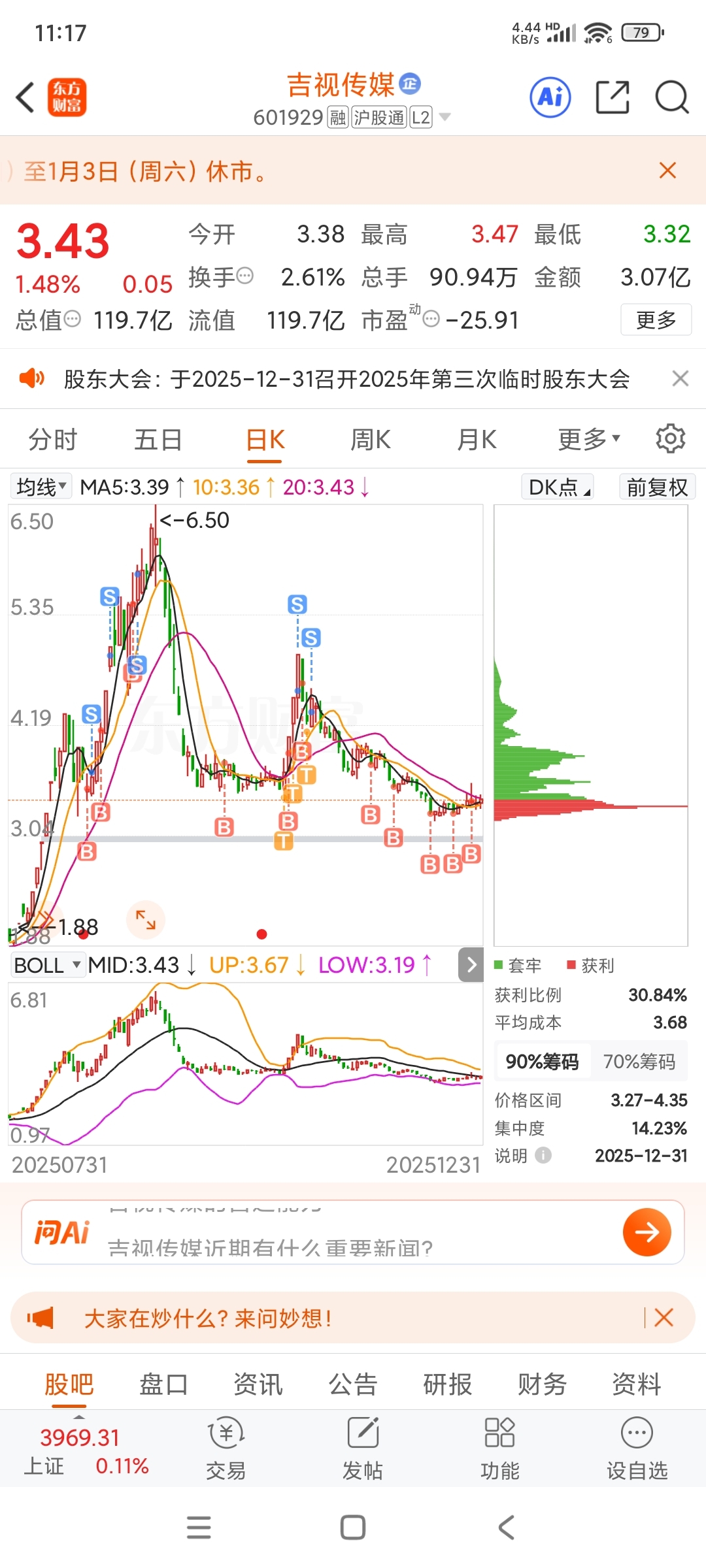 今年八月初入股市,五万本,如今还在亏。值得庆幸的是,买吉视传媒还从来没亏过,这波