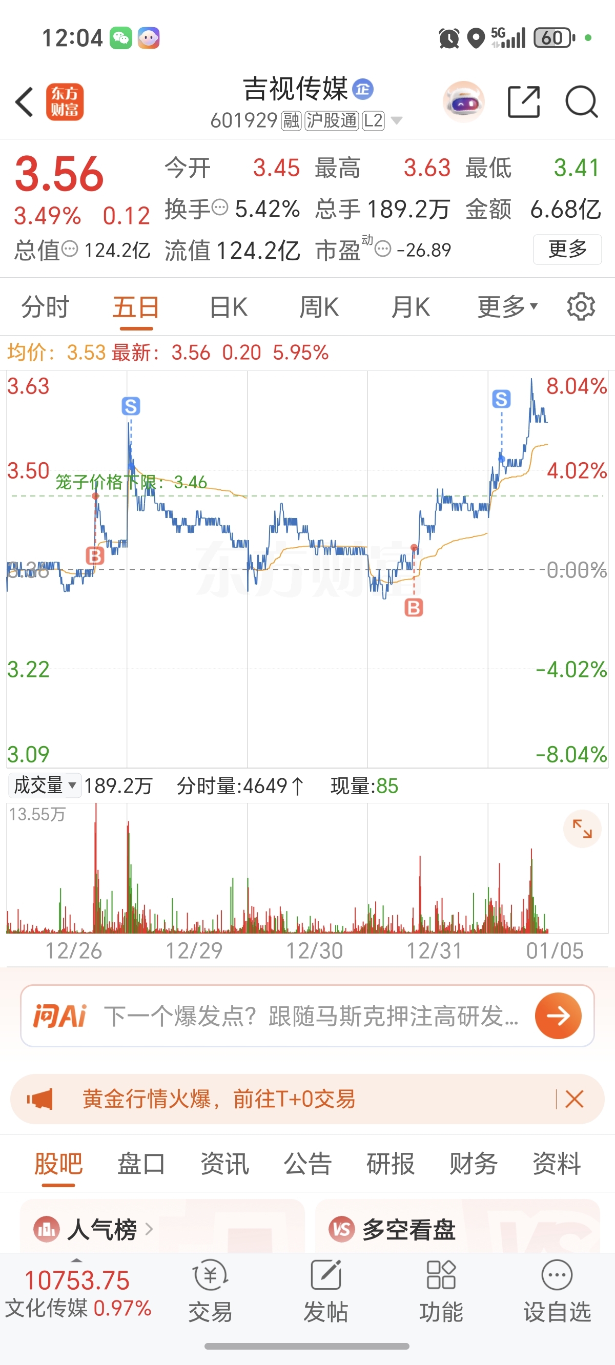 $吉视传媒(SH601929)$ 做T的机会都不给,等明天
