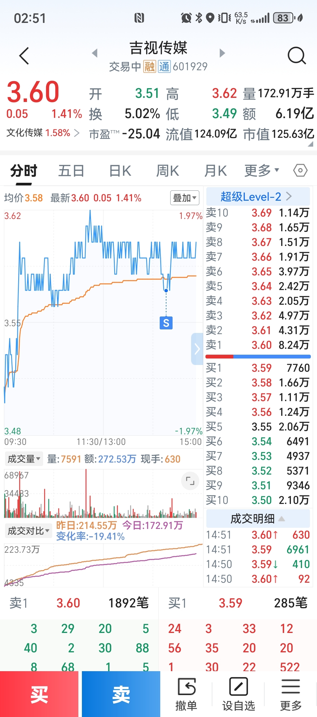 $吉视传媒(SH601929)$ 垃圾,先割半仓,老规矩,不割不拉是吧?