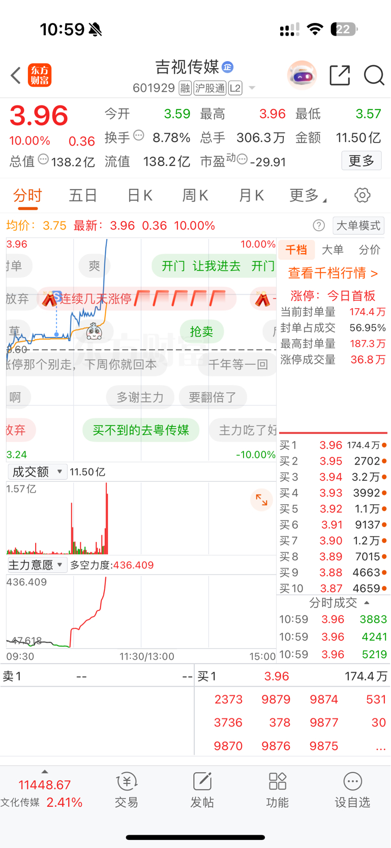 $吉视传媒(SH601929)$ 刚刚割完就涨停,有东西啊