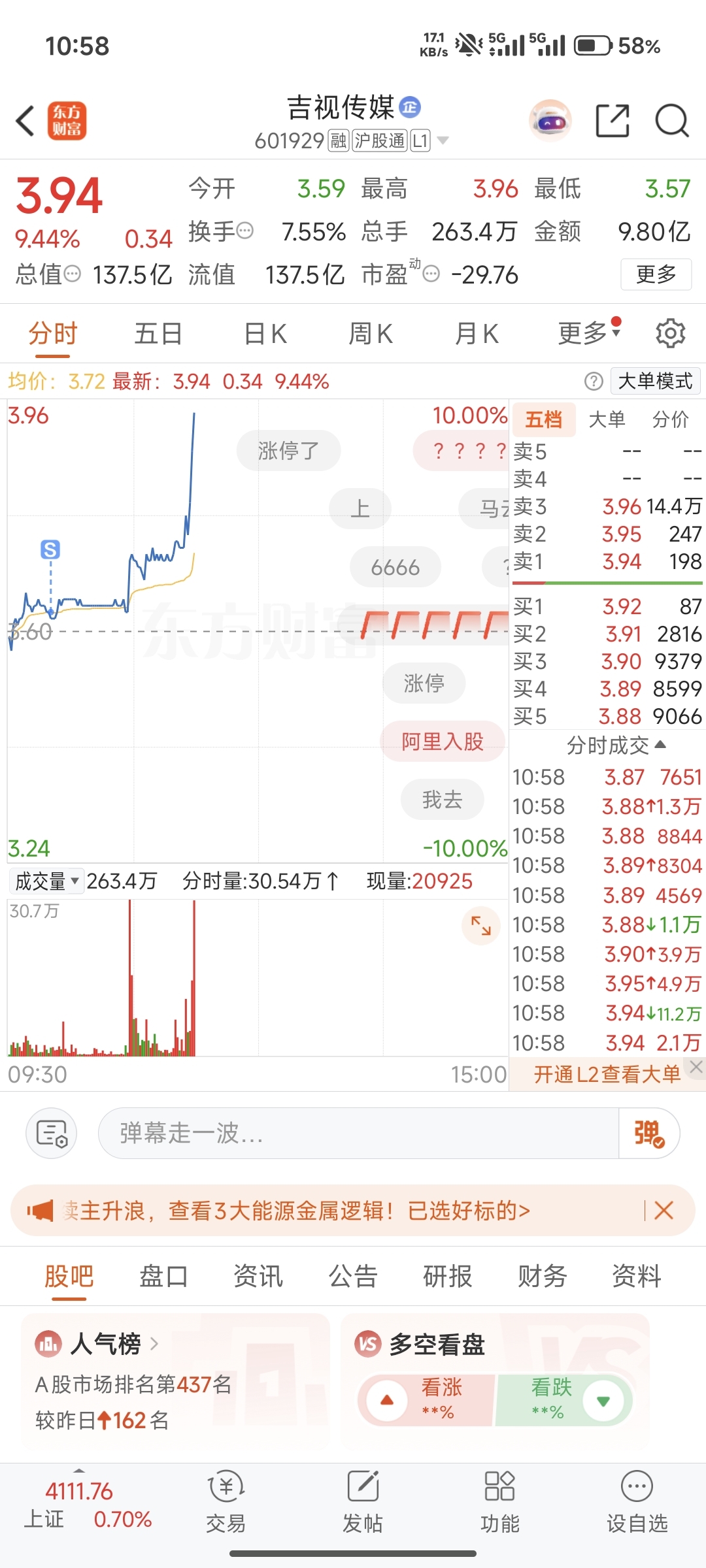 $吉视传媒(SH601929)$ 刚卖呀买了隔壁光启。。。感觉还是亏了