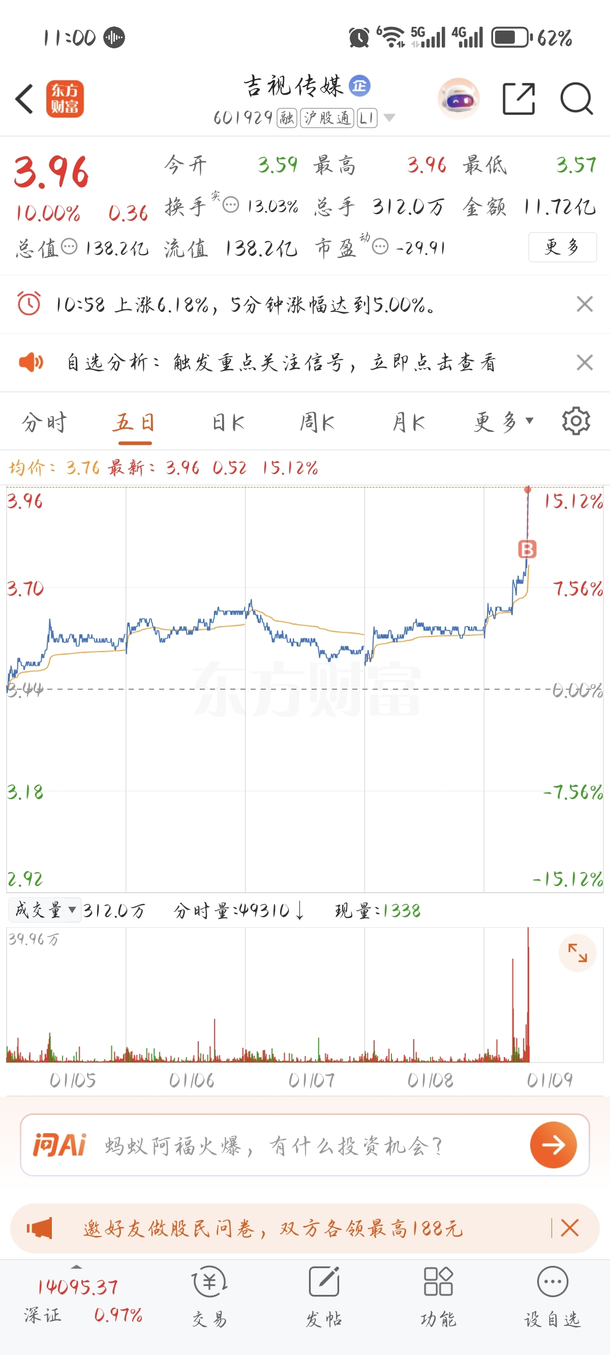 $吉视传媒(SH601929)$