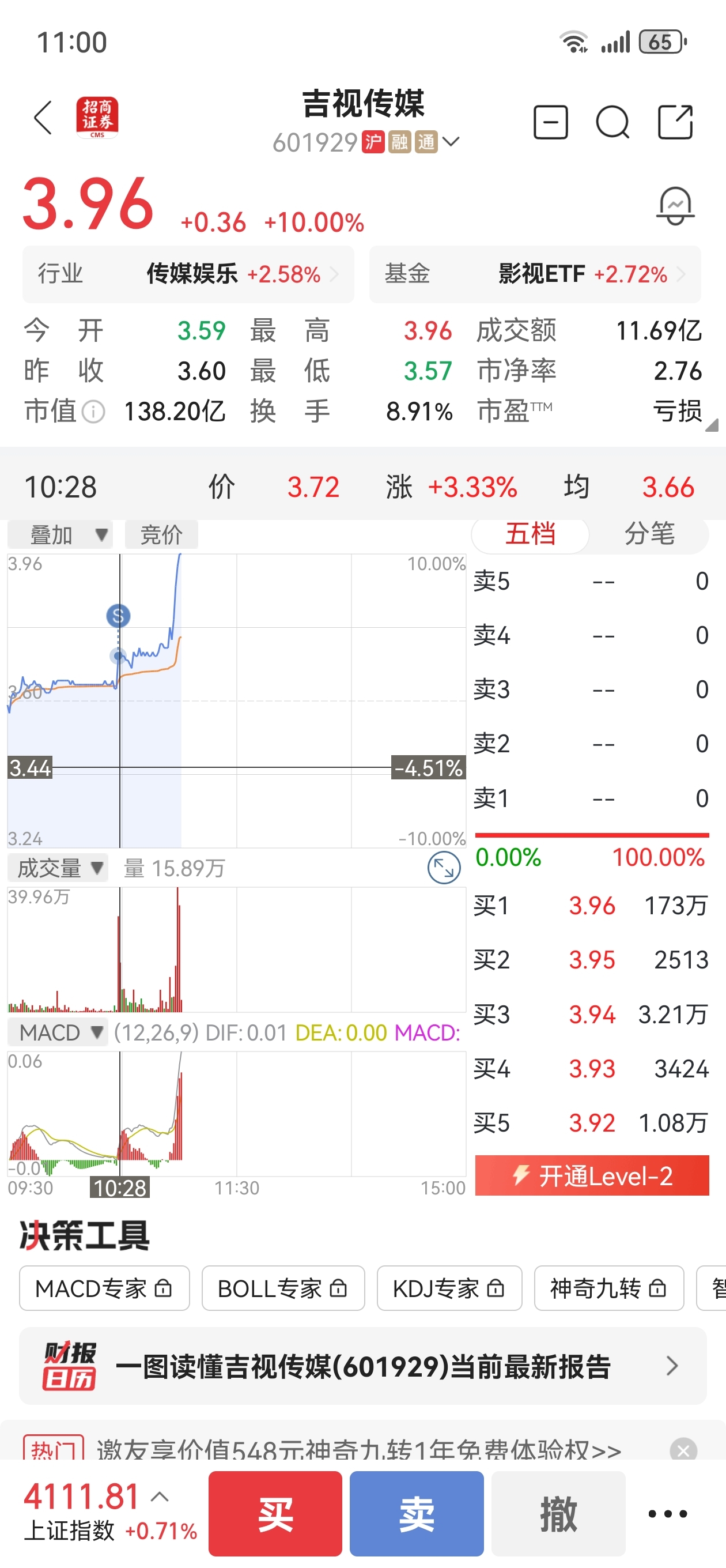 $吉视传媒(SH601929)$ 守了三个月,今天割了你涨停,朱莉我透你个dj