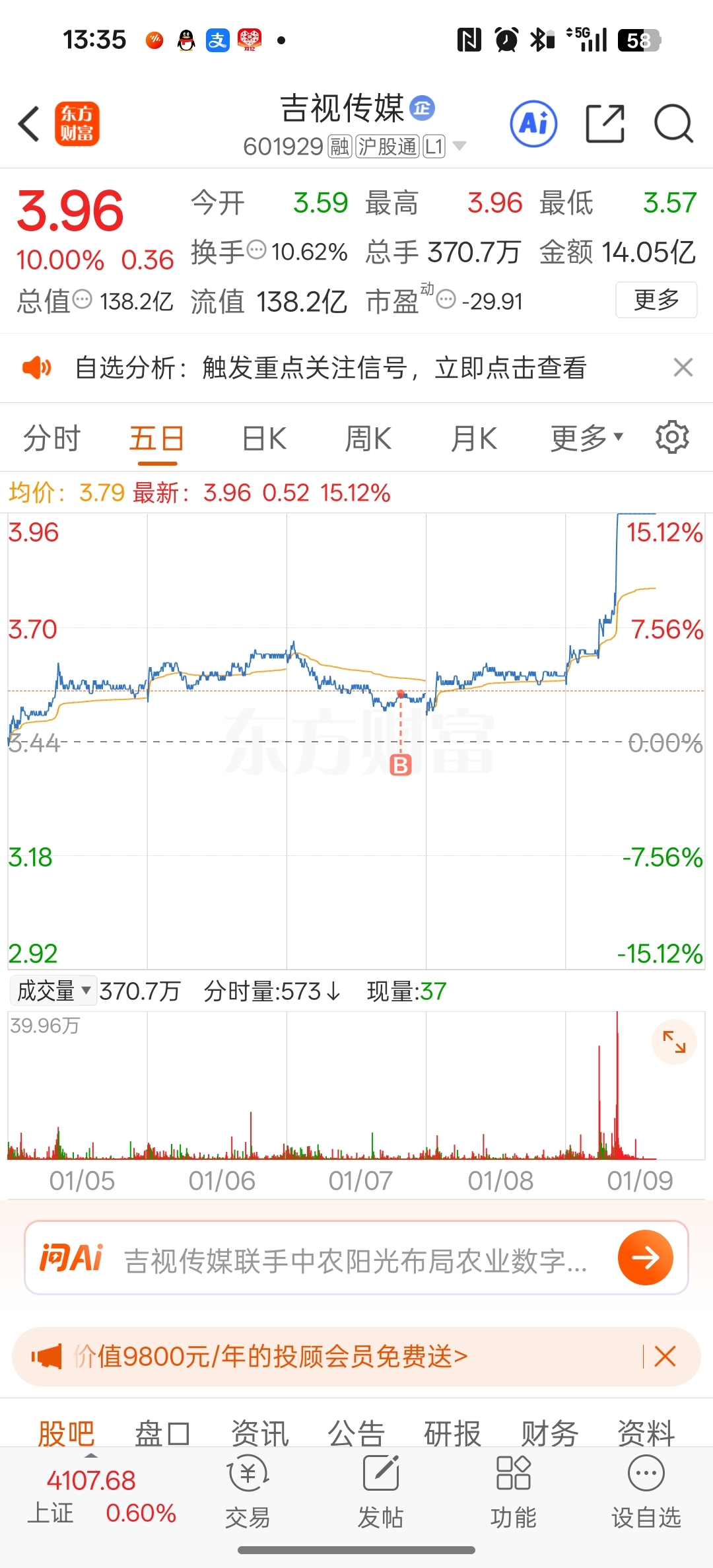 $吉视传媒(SH601929)$ 卖还是不卖啊。刚进来两天就这样