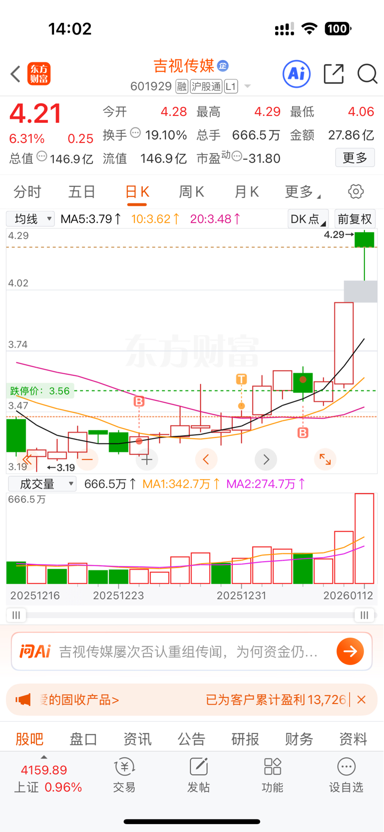 $吉视传媒(SH601929)$ 走不走?我在犹豫。