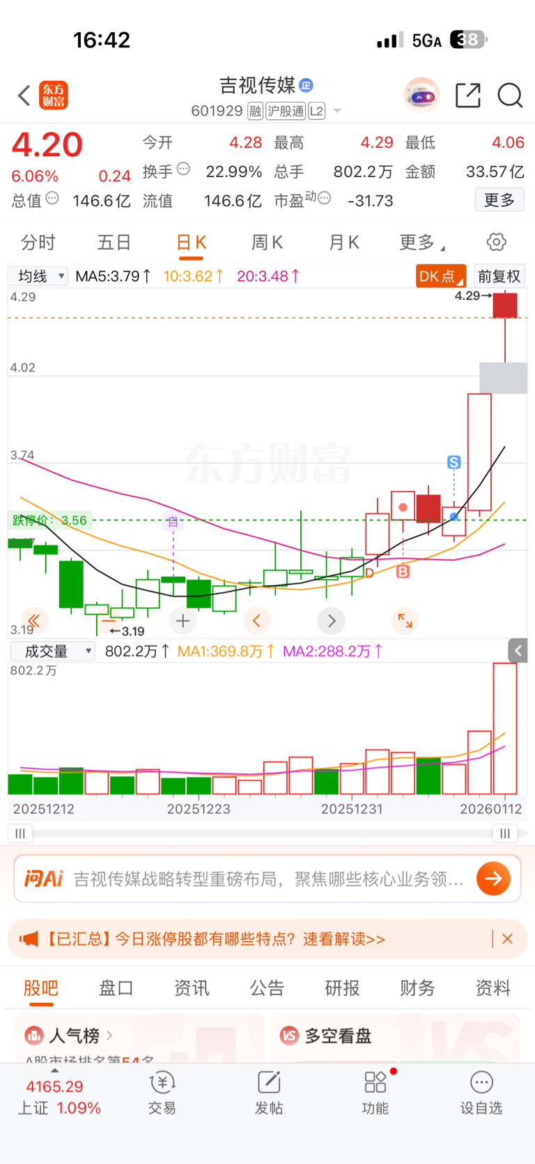 $吉视传媒(SH601929)$ 其实我觉得你们这些赚钱了的,都应该给我点个赞。我不走你们怎么可能赚钱。大a控盘者本人夜
