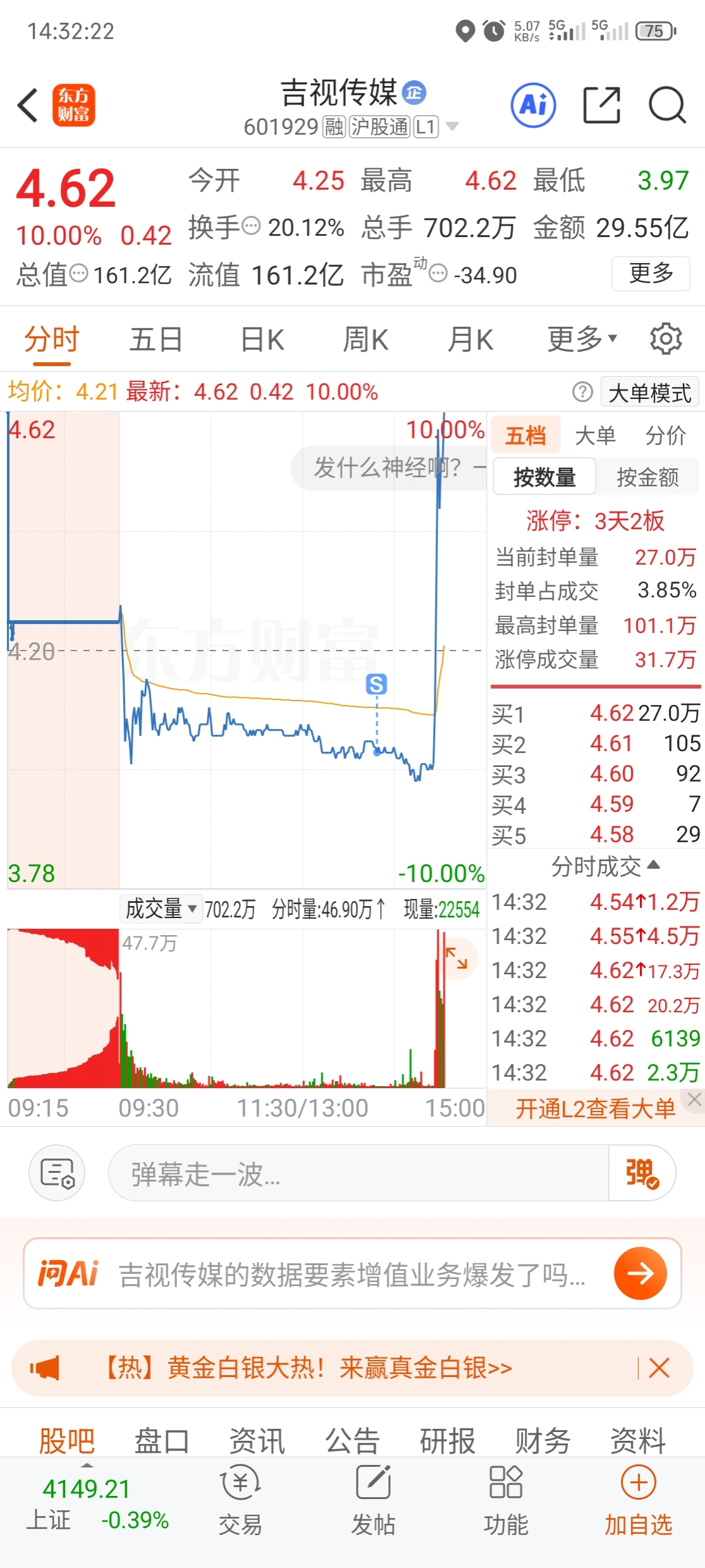 $吉视传媒(SH601929)$ 你踏马的,一卖你就起飞,操