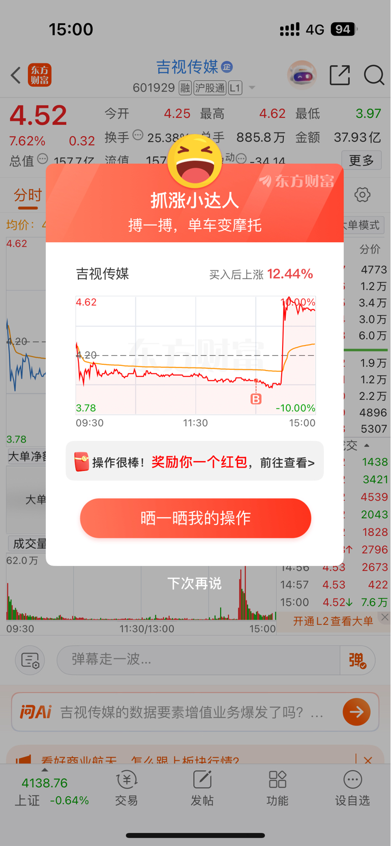 $吉视传媒(SH601929)$ 我又来了